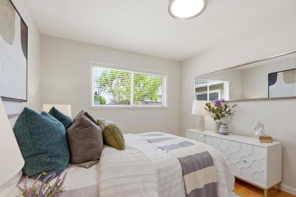 Stunning Birdland Home Prime Sunnyvale Location! Nestled on a quiet street in the highly sought-after Birdland neighborhood. Fabulous move-in ready. Bright, clean, and spacious layout with numerous upgrades. Features include fresh interior & exterior paint, upgraded dual-pane windows, a composition shingle roof and gutters (only 3 years new), solid hardwood floors throughout, central forced heat & A/C. Excellent floor plan, separate living room, family room, and dining area with recessed lighting. Family room with gas fireplace and a large picture window in the living room providing abundant natural light. Updated kitchen with white cabinetry, quartz countertops, breakfast bar, full subway tile backsplash, stainless steel dishwasher, and gas GE range. Quiet primary suite with walk-in closet and fully remodeled bathrooms. Attached 2-car garage with washer/dryer. Professionally landscaped yard with spacious patio, lush lawn, mature drought-tolerant plants, and automatic irrigationperfect for outdoor entertaining. Walking distance to Raynor Park, Laurelwood Elementary, BASIS Independent School, Cupertino Village (99 Ranch Market & dining), Apple, and Kaiser Santa Clara Medical Center. Minutes to Google, Nvidia & major tech campuses. Easy access to Highway 280, 85, 101 & 237.