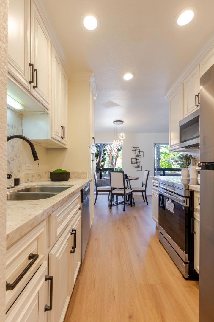 A Move-in Ready Condo! This brightly lit, and spacious second-floor unit welcomes you with brand-new paint, stylish LVP flooring with padding, new baseboards, new light fixtures and all newly painted doors throughout. This home features a large living room with ample space to create an office area, Kitchen with newly painted cabinets, cabinet hardware, new faucet & a brand-new stove and a refrigerator, dining area overlooking greenery and open skies & a large balcony with great open-space views, bathroom with new shower door, plumbing fixtures and commode, adds a fresh, updated touch. Laundry facilities are conveniently located just downstairs, and assigned parking space sits right behind the building for easy everyday living. Community facilities across the street from the unit.. The Tradewinds Community offers great amenities, including a clubhouse, a heated indoor Swimming Pool, Spa and sauna. fitness Center, Basketball, Tennis, Racquetball Courts, Billiards room. Conveniently located near Oakridge Mall and The Village Oaks Shopping Centers. Easy access to the Caltrain station, Highways 87, 85, and 101. HOA fees covers the HOA amenities plus Water, Sewer and Garbage services.