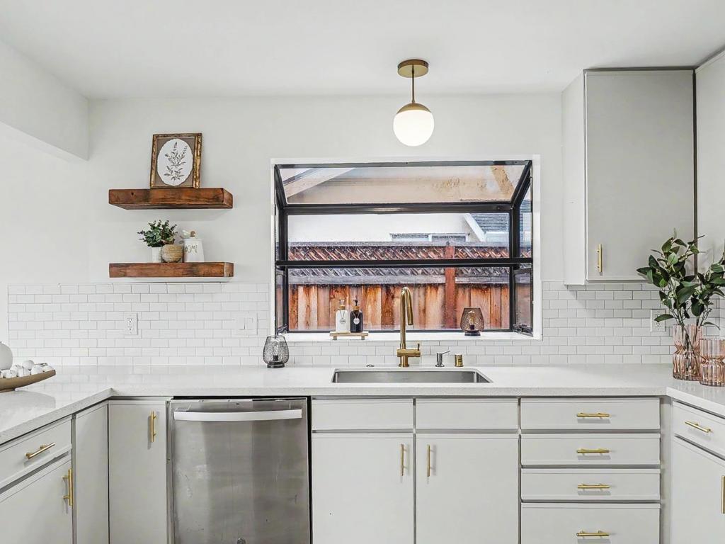 Updated throughout, this light-filled home is centrally located in one of Santa Clara's most desirable neighborhoods. Features include brand new flooring, fresh interior and partial exterior paint, and an updated fireplace in the living room with separate dining area and backyard access. The kitchen offers newer quartz countertops, subway tile backsplash, painted cabinetry, newer hardware, and stainless sink with bay window. Flexible space off kitchen ideal for breakfast nook or family room. Three-bedroom wing includes an ensuite and updated hall bath. Large backyard with patio for outdoor use. A/C. Conveniently located near Apple, Nvidia, Santana Row, Pruneridge Golf Course, parks, schools, and major commute routes. Top-rated Westwood Elementary.