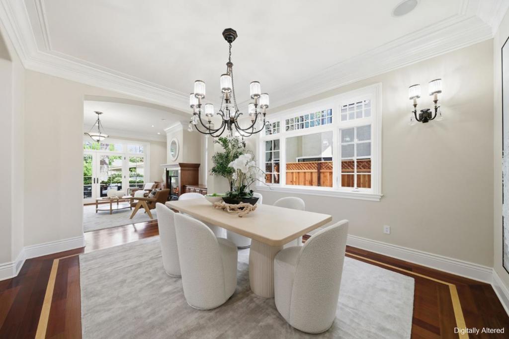 Classic design and substantial scale define this Old Palo Alto three-story estate. Brazilian cherry floors, curated lighting, and well-proportioned formal rooms are complemented by a spacious kitchen and family room combination designed for everyday living. The home has 5 bedrooms and 4 baths, including a luxurious upstairs primary suite with three customized couture closets, plus main and lower level bedrooms. The lower level also has a large recreation room with space for fitness, a theater with tiered seating, and a temperature-controlled wine cellar. Outdoor living features a covered terrace, barbecue center, and beautifully landscaped gardens in a private setting. Additional highlights include two laundry rooms, closet organizers throughout, and a detached 1-car garage and carport. Close proximity to downtown University Ave, Stanford, and excellent Palo Alto schools, including Walter Hays Elementary.