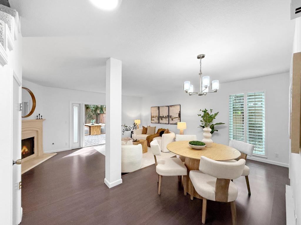 Welcome to this well-maintained townhouse-style condominium in a centrally located Mountain View community. This two-story home features a functional layout with laminate flooring throughout the main living areas, a cozy fireplace, and an updated kitchen with quartz countertops, stainless steel appliances, and ample cabinetry. A convenient half bathroom is located on the ground level. Upstairs, two well-proportioned bedrooms offer comfortable living, including a larger bedroom with access to a private balcony overlooking the backyard patio. The full bathroom has been updated with a modern vanity, and the upper-level laundry area adds everyday convenience. The spacious private backyard patio provides a great setting for outdoor dining or relaxation and opens toward the community's landscaped grounds. As an end unit, the home benefits from added privacy and natural light. Additional features include a detached one-car garage, an assigned parking space, and access to Country Village HOA amenities, including a community pool and walking paths. Ideally located near Downtown Mountain View and Castro Street, known for its boutique shops, cafes, and restaurants, this home also offers convenient access to parks, major employers, and key commute routes.