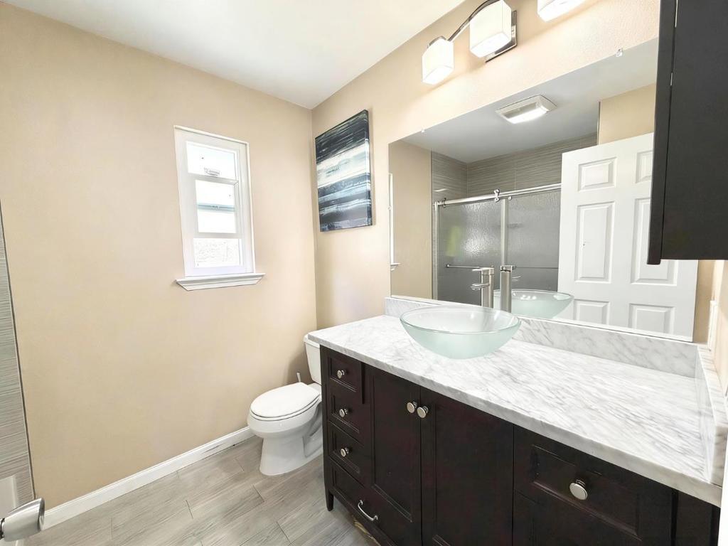 Welcome to this beautifully remodeled, move-in ready 2 story townhouse that truly lives like a single-family residence. With no shared living walls and only a minimal connection at the garage, this rare home provides outstanding privacy, abundant natural light, and a peaceful living environment. The home features 3 bedrooms and 2.5 bathrooms with a bright, open layout. The main level is designed for both comfort and entertaining, offering a spacious living area, dining space, and a modern kitchen, along with a convenient powder room. Upstairs, 3 generously sized bedrooms include a stunning primary suite with vaulted ceilings, a private en-suite bath, and a walk-in closet. A secondary bedroom also features high ceilings, creating an airy and expansive feel. The designer kitchen showcases sleek cabinetry and stainless steel appliances, complemented by upgraded flooring throughout the home. Step outside to a private backyard, perfect for relaxing or hosting. Fully remodeled and upgraded with dual-pane windows throughout, this home is truly move-in ready. Easy access to BART, I-680, and US-101. Close to shopping, dining, and everyday conveniences, as well as nearby parks. Close proximity to top private schools like Challenger and Stratford School.