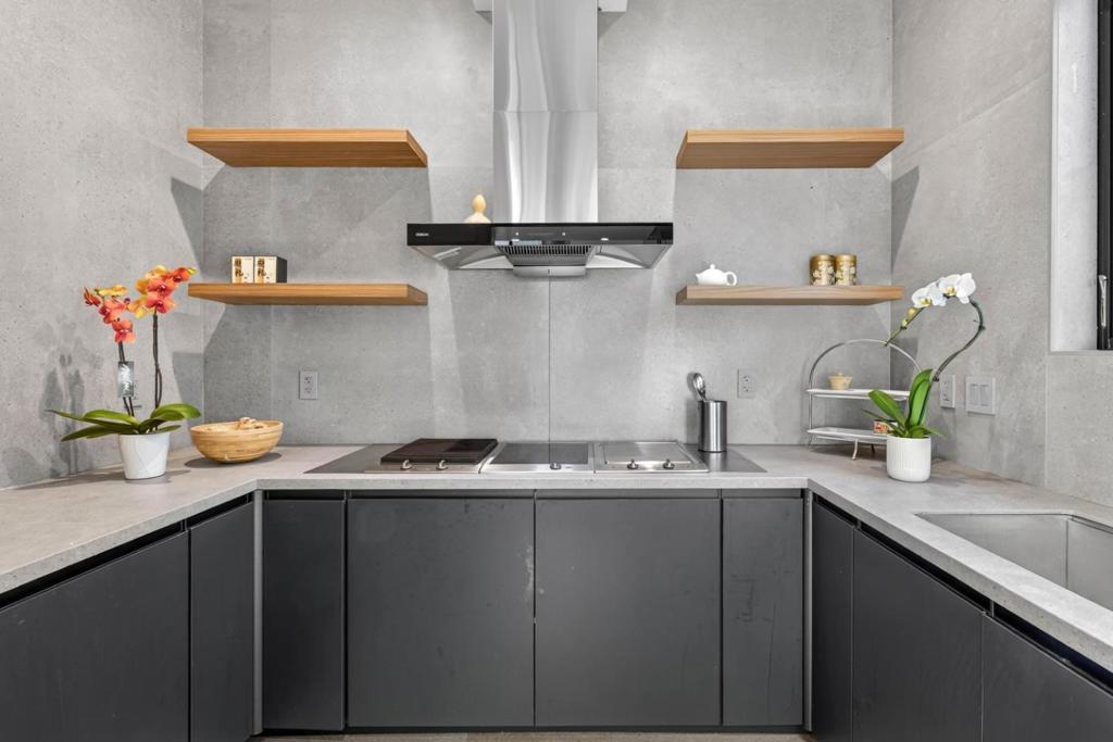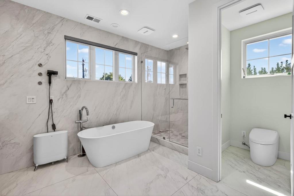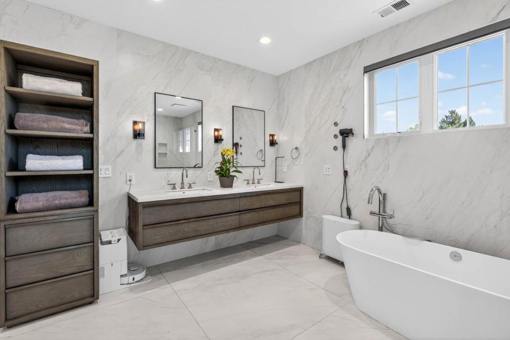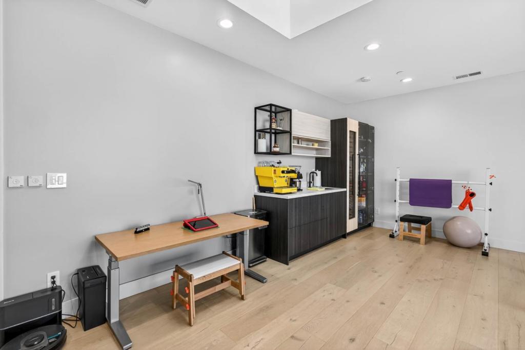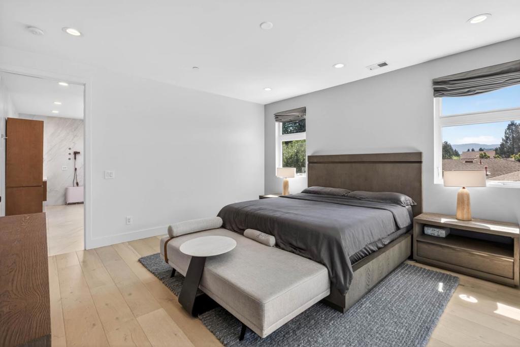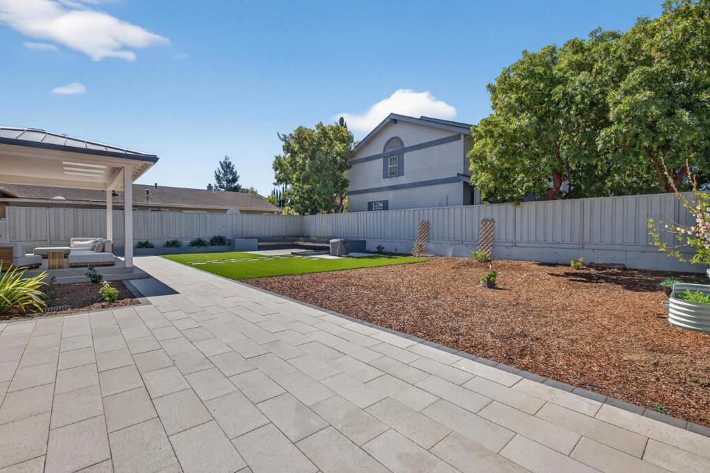 Newer 2024 built contemporary home in the highly sought-after Monta Vista neighborhood, near Apples Infinite Loop & Spaceship Campus, major tech hubs, & Hwys 85 & 280. Top-rated schools include Lincoln Elem., Kennedy Mid., & Monta Vista High. Featuring a bright open-concept layout with high tray ceilings, recessed lighting, skylights, & large-format tile flooring. Flow connects the family room, dining area, kitchen, & outdoor living spaces. The family room showcases a linear fireplace & feature wall. The kitchen has a large center island, two-tone cabinetry, stainless steel appliances: built-in refrigerator & wall ovens, cooktop, hood, butlers pantry, & designer fixtures. A dedicated bonus room & spacious upstairs loft with built-in workstation, floor-to-ceiling storage, wet bar, & beverage fridge. The primary suite features a private balcony, spa-inspired bath with freestanding soaking tub, dual floating vanity, slab-style tile walls, frameless glass shower with niches, designer sconces, & water closet. Designer-appointed bathrooms throughout, dedicated laundry room, & custom mudroom. Exterior features a covered patio with skylights, additional open patio, expansive paver areas, & a private fully fenced backyard with lawn, hardscape, & low-maintenance landscaping.