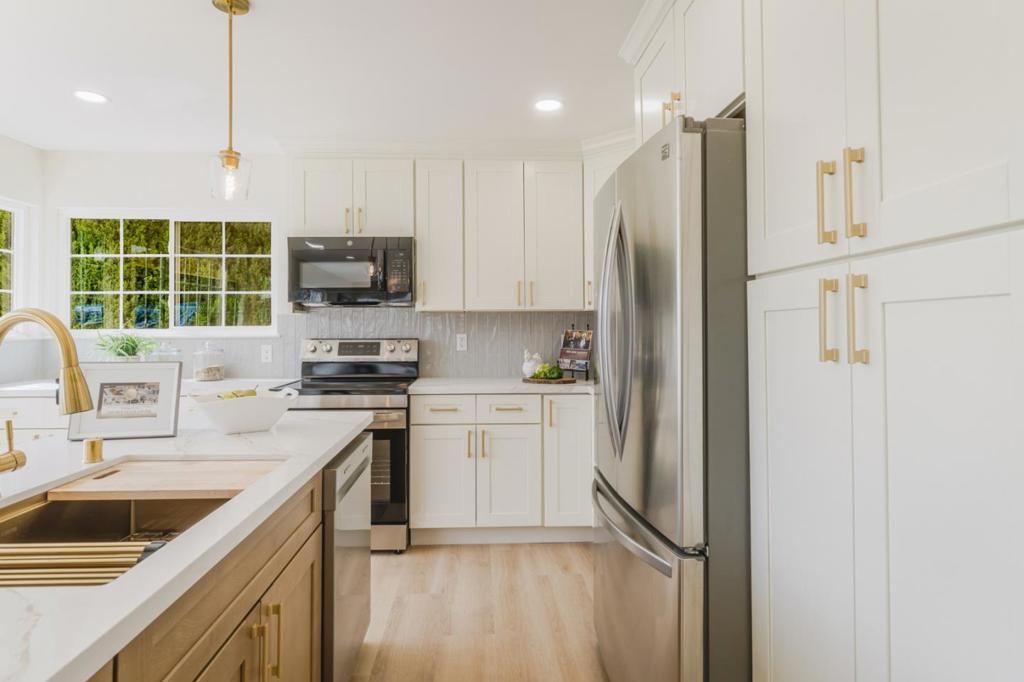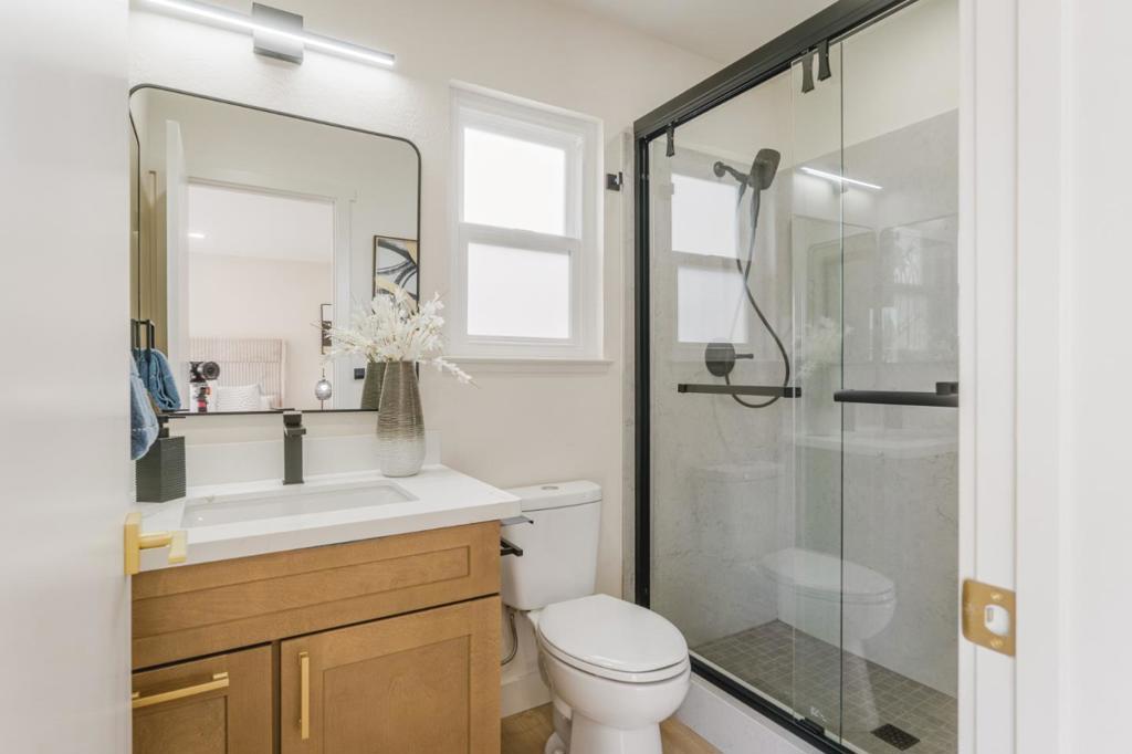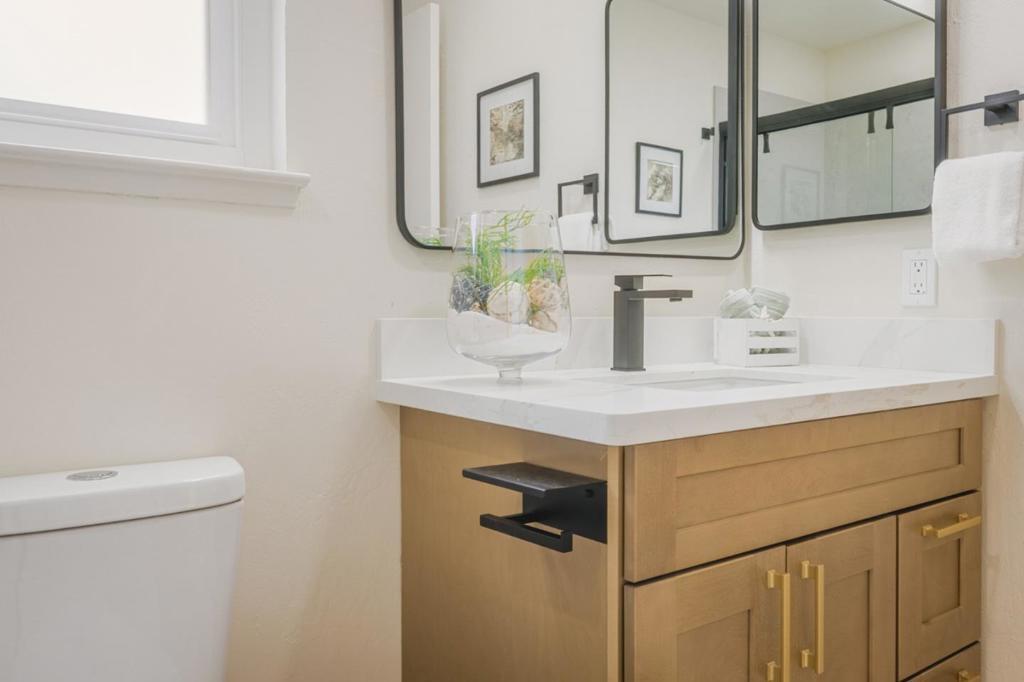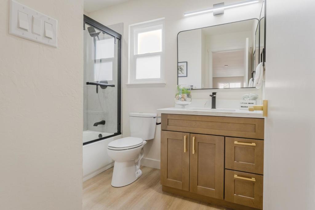 Tucked away on a quiet court in a highly convenient San Jose location, 130 Juneberry Court has been completely remodeled from top to bottom with a sharp, cohesive design that feels both elevated and livable. The all-new kitchen is a true standout, featuring starry-gold quartz counters, stylish shaker cabinetry, brushed gold hardware and fixtures, and a clean, custom feel throughout. The bathrooms have been transformed into spa-quality spaces with quartz shower surrounds, glass enclosures, upgraded vanities, and beautifully selected finishes that give the home a polished, high-end feel. New luxury vinyl plank flooring runs throughout, complemented by all new paint, trim, and hardware that tie every space together with consistency and style. Outside, the large backyard offers a rare combination of beauty, space, and low-maintenance usabilityideal for relaxing, entertaining, or simply enjoying the extra room. All of this in a central location close to shopping, dining, parks, recreation, and key commute routes to Downtown San Jose, the Peninsula, and beyond.