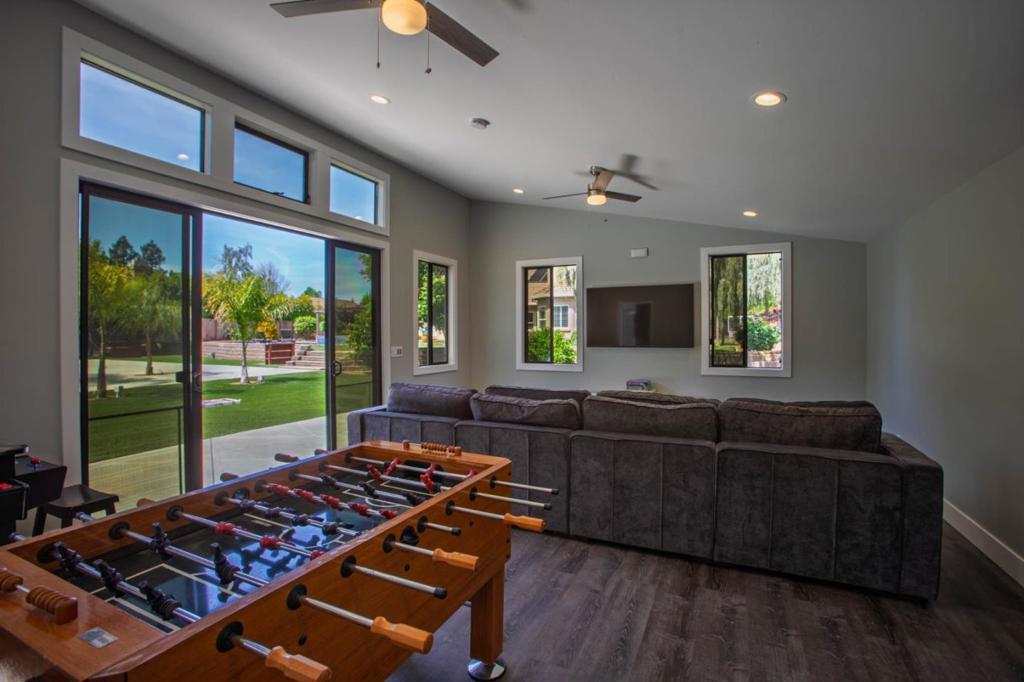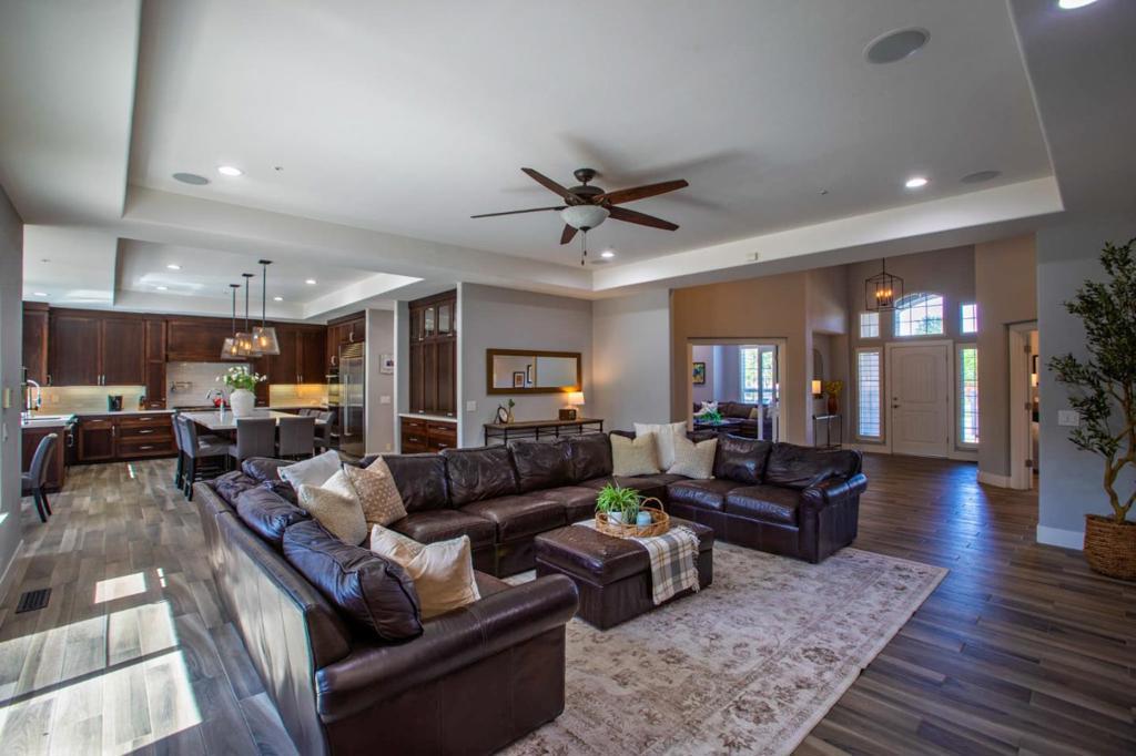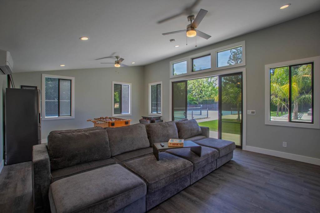 Welcome to 1960 Pear Dr, a beautifully renovated home in Morgan Hill blending luxury, comfort, and modern design. With 4,232 square feet, it offers 5 spacious bedrooms and 3 updated bathrooms with 2 half baths. The thoughtfully updated kitchen features high-end appliances, gorgeous countertops with two dishwashers, tile flooring, dual-pane windows, and whole-house solar that adds style and efficiency. The primary suite includes a spa-like free standing bath with dual vanities, walk in shower, fireplace and large walk-in closet. Custom California Closet systems are found throughout the home. Enjoy a large media/game room off of the family room with a drink fridge and microwave. Outdoors, relax in the solar-heated pool and hot tub, or entertain in the pool house, on the patio with a gas fire pit, horseshoe pit, and full-size tennis court. The landscaped yards, RV parking with hookup, and raised garden beds add versatility. Additional features include central heating and AC, shutters, and a 4-car garage. This exceptional home is perfect for both relaxing and entertaining! Don't miss this one!