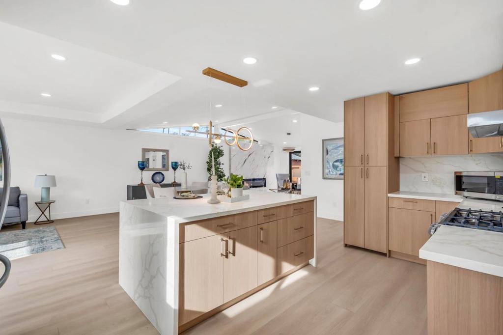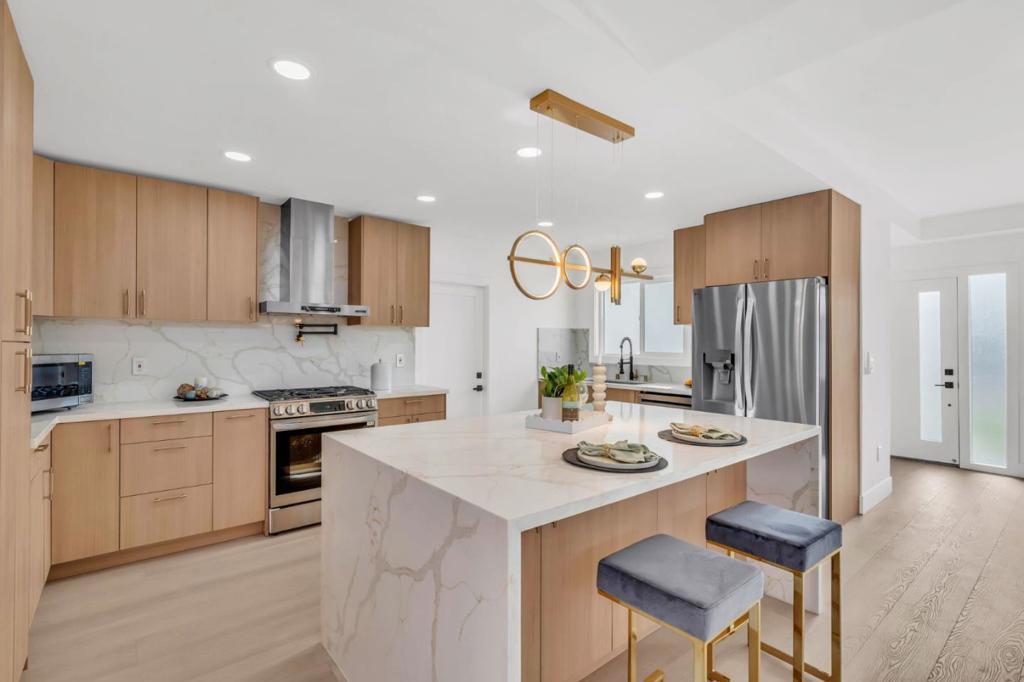 Top-to-bottom modern luxury at 1759 Higgins Ave, all one level extensively remodeled with full city permits in the heart of Santa Clara with higher than normal ceilings for an extra premium feel most buyers want. Unparalleled proximity to NVIDIA HQ, Apple, and major tech hubs, ideal for a short commute or bike ride. Enjoy a quiet, friendly neighborhood just minutes from the Moonlite Shopping Center, grocery stores, and top-rated schools like Wilcox High. The interior luxury hybrid resilient vinyl flooring and smooth drywall throughout. The chef's kitchen is a showstopper with Calacatta Quartz countertops, an island with waterfalling Quartz on both sides, and premium LG stainless appliances, including a gas range with a pot filler. Retreat to the newly added primary suite, complete with a walk-in closet and spa-style en suite. Dramatic panoramic bi-fold doors create a seamless transition to the professionally landscaped backyard. Modern upgrades include a new 200-amp panel, tankless water heater, and individual mini-split A/C units in every room. The exterior showcases a new 2026 asphalt shingle roof, smooth stucco light color finish, newly poured concrete new pavers, and a two-car garage with epoxy flooring. This home offers sophisticated living in an unbeatable location.