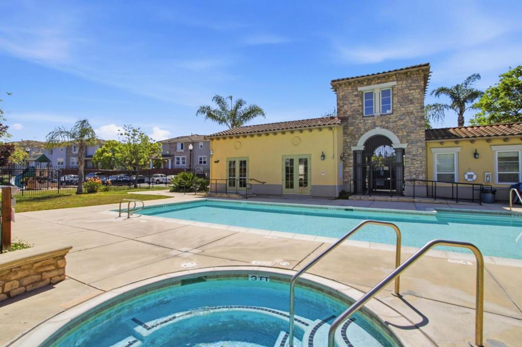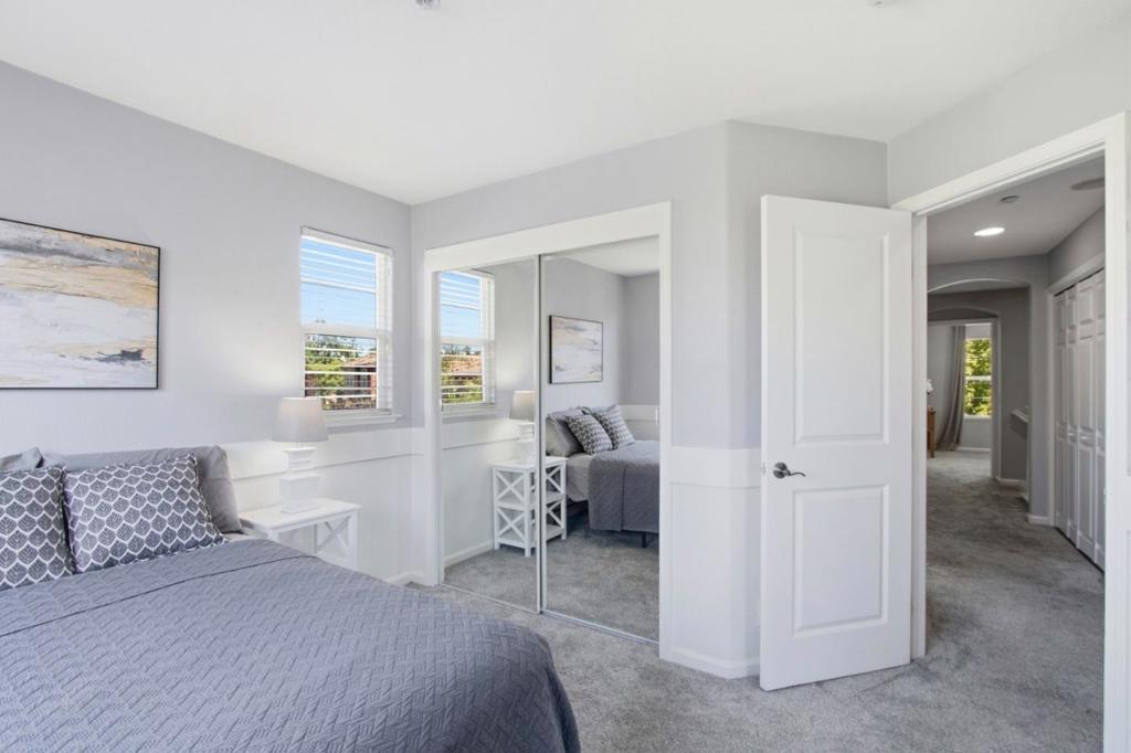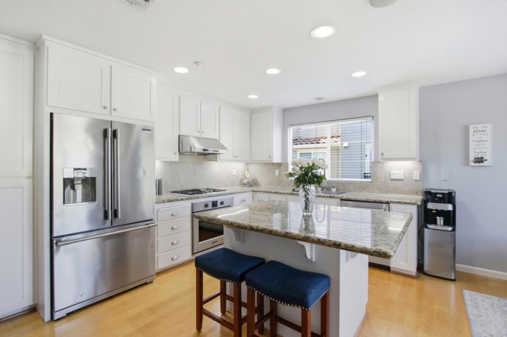 Welcome to this beautifully maintained townhouse in the highly desirable Bella Villagio community! This light-filled home offers stunning views, abundant natural light, and a thoughtfully designed open floor plan perfect for modern living. The bright and airy layout features a spacious living room with soaring ceilings, a cozy fireplace, and a formal dining area that gives the home a single-family feel. The kitchen seamlessly opens to the family room, creating an ideal space for entertaining, and is equipped with white cabinetry, granite countertops, and stainless steel appliances. The luxurious primary suite includes a walk-in closet, dual vanities, an oversized soaking tub, and a separate shower. Additional highlights include generously sized bedrooms, an upstairs laundry area, and an attached two-car garage with extra storage space. Enjoy outdoor living on the private front patio perfect for BBQs and relaxing. End unit with enormous price. The HOA covers water and offers fantastic amenities, including a pool, spa, clubhouse, and playground. Conveniently located near major highways (87, 280, 85, and 101) and close to shopping and dining, this home combines comfort, style, and an unbeatable location.
