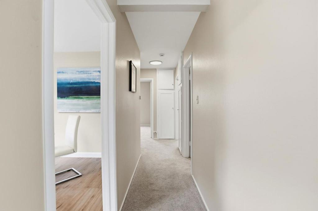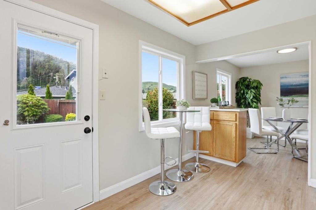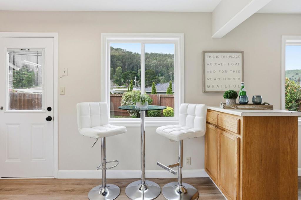 Well located in lower Linda Mar, blocks to the beach and Linda Mar Shopping Center on a rarely traveled street. Freshly painted throughout the interior. New living room wall heater and rear heater has a new pilot generator. Bathroom floor dry rot repaired with new floor, vanity, light and mirror. New ceiling lights throughout. Great, quiet street in Linda Mar with views of the hills. Backyard has great southern exposure with afternoon sun and patio for barbecues. Two car side by side garage with remote opener. Dual pane windows with screens being manufactured for all windows. Washer and dryer included. Originally built as a four bedroom with the fourth bedroom converted to a dining room off the kitchen. Just a really well located home in move in condition.