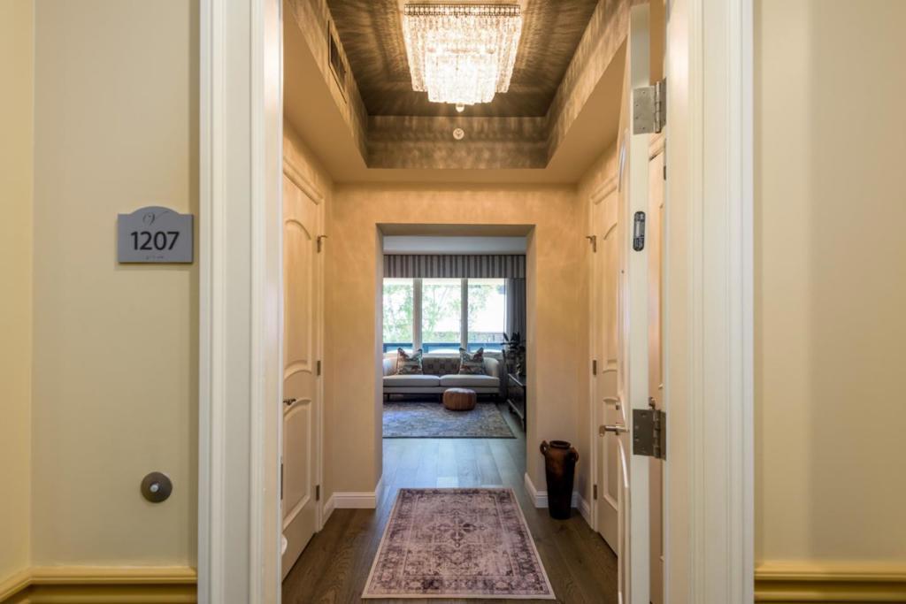 Step into luxury with this impeccably designed condo, where high-end designer touches elevate every room. Enjoy custom-made window treatments paired with sleek motorized blinds, and elegant hardwood floors that flow seamlessly throughout the space. The kitchen is a chefs dream, featuring premium KitchenAid stainless steel appliances, painted cabinetry with chic brass pulls, and a sophisticated color palette that creates a warm, modern ambiance. Dazzling crystal light fixtures from Visual Comfort and Horchow add an extra layer of refinement, while the spacious layout offers exceptional storage with generous closets in both the entryway and primary bedroom. A nearly new GE Profile large-capacity washer/dryer combo adds convenience and efficiency to your daily routine. Parking and additional storage are provided in the lower level of the building. Versailles combines the advantages of an elegant luxury lifestyle with a unique sense of community for residents 55 and over. The comprehensive service package is designed to provide you with exceptional comfort and convenience: gourmet meals, housekeeping, maintenance service, heated indoor pool & spa, fitness center, activity classes, and many other on-site amenities. And the location is just steps away from San Mateos charming downtown.