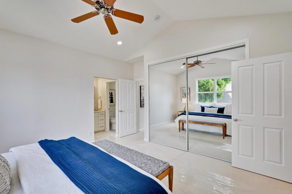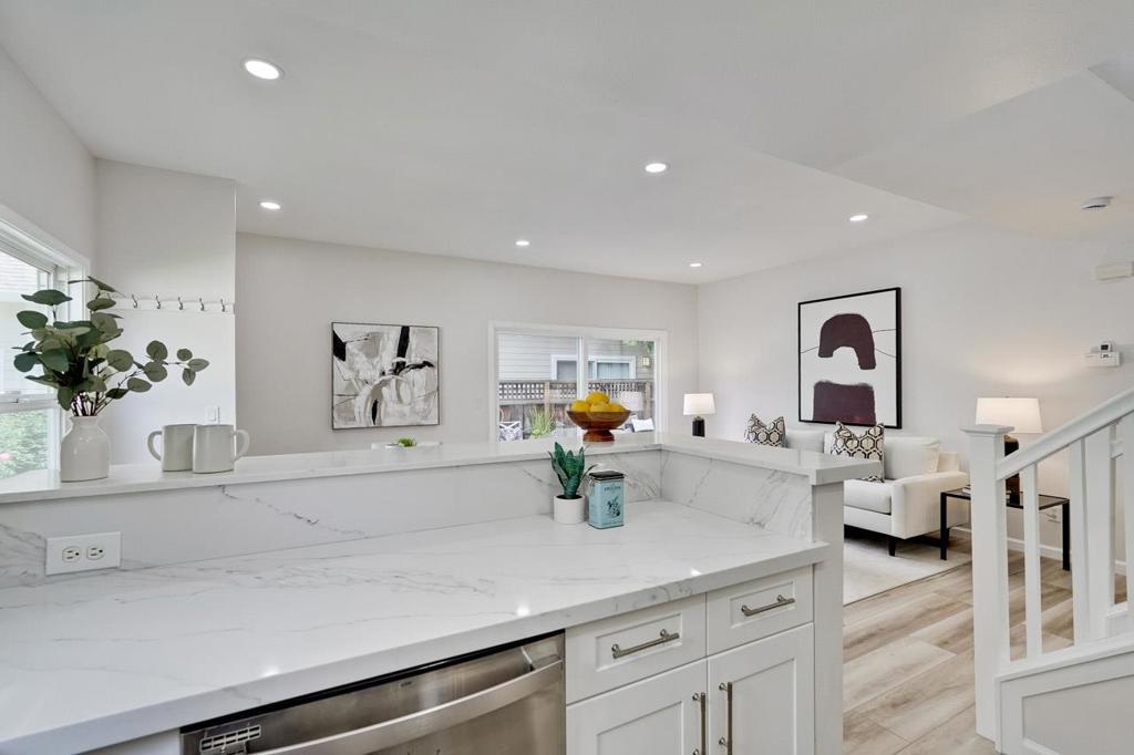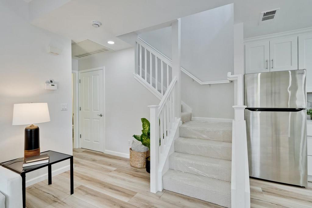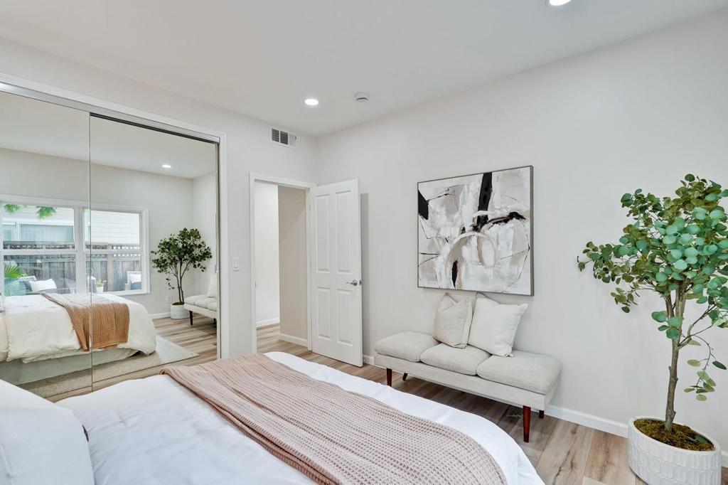 Gorgeous Newer End Unit TH with Los Altos High. Beautiful, tree-lined setting cradles this brand-new contemporary - finishes throughout this townhome.Ground floor room with a full bathroom perfect for in-laws, guests, or rent it out for extra income. Gourmet chefs kitchen, wood cabinets, quartz counters, and stainless-steel appliances. Kitchen, dining and living room open concept with sliding door leads to a cute side yard great for entertaining guests. A primary bedroom suite with a vaulted ceiling and walk-in closet offers a spacious, airy retreat. Double pane windows, recessed lighting/Inside laundry/ detached one- car garage and one assigned open parking space. Easy access to highway, Googleplex, and other major high-tech companies. Moments to vibrant downtown, parks, shopping, dining. HOA including water, garbage, maintenance exterior, landscaping. Crittenden Middle 8 / Los Altos High 10