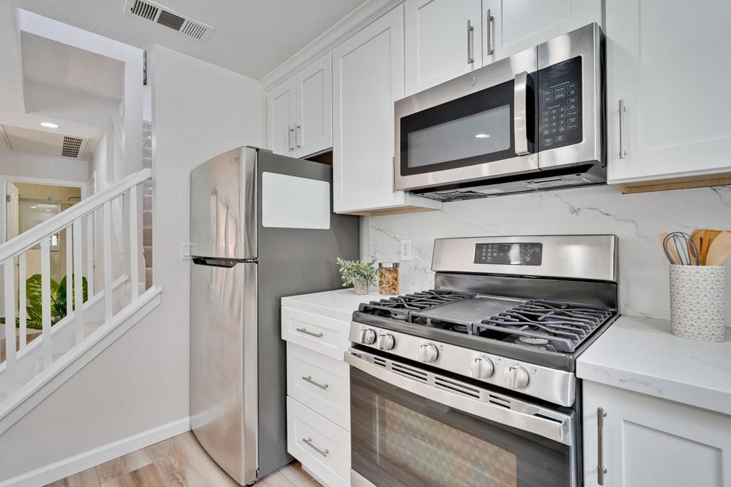 • AppliancesDishwasher, Gas Cooktop, Disposal, Gas Oven, Refrigerator, Vented Exhaust Fan