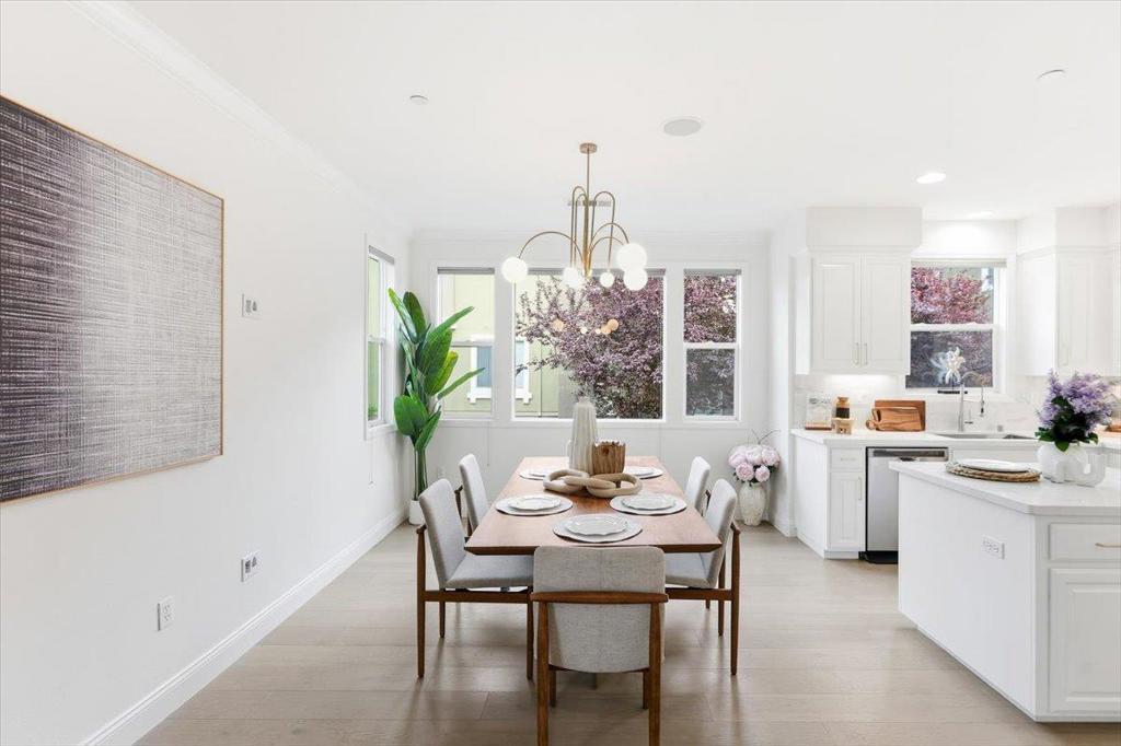 Beautiful end-unit townhome by Toll Brothers, perfectly positioned in the heart of Silicon Valley near major tech campuses. This bright and stylish Sunnyvale residence offers approximately 1,650 sq ft of thoughtfully designed living space with 3 bedrooms and 2.5 baths. Step into a light-filled living area highlighted by dramatic 13-foot ceilings and elegant front-facing windows, creating an inviting and airy ambiance. The open-concept family and dining area flows seamlessly into a beautifully upgraded chefs kitchen featuring stainless steel appliances, a Fotile range hood, gas range, and a generous island with sleek quartz countertopsperfect for entertaining and everyday living. Upstairs, unwind in spacious bedrooms, including a serene primary suite with vaulted ceilings and a spa-inspired bath complete with dual sinks, soaking tub, and separate shower. Convenient in-home laundry enhances comfort and ease. Enjoy the vibrant lifestyle with a short stroll to Seven Seas Park, and quick access to Sunnyvale Baylands Park, Levi's Stadium, and Shoreline Amphitheatre. With easy access to Highways 237, 101, and 85 and proximity to Apple, Google, Microsoft, Amazon, Meta, and LinkedIn, this is a home you wont want to miss.