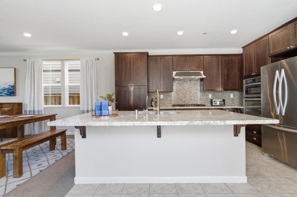 Experience the best of "Agrihood" living in this stunning detached single-family home in the highly coveted Patterson Ranch. Built in 2017, this 2,651 sq ft residence on a 4,500 sq ft lot features 4 spacious bedrooms and 3.5 baths, with a versatile upstairs family room easily converted into a 5th bedroom. Step inside to bright, open living spaces flooded with natural light. The gourmet chef's kitchen boasts a large center island, granite countertops, and premium stainless steel appliances. A desirable main-floor bedroom suite is perfect for guests or a home office. Upstairs, discover a luxurious primary retreat with a spa-like ensuite and walk-in closet, alongside spacious secondary bedrooms and a convenient laundry room. Modern upgrades include energy-efficient dual-zone HVAC, a tankless water heater, and an attached 2-car garage with a long driveway. Step outside to a low-maintenance backyard or explore the communitys unique 15-acre organic farm, orchards, and gardens. Residents enjoy a farmhouse-style clubhouse, tennis/basketball courts, and playgrounds, all just minutes from Coyote Hills Regional Park, I-880, and the Dumbarton Bridge. Located within the boundaries of top-rated schools: Patterson Elementary, Thornton Middle, and American High. Welcome home!