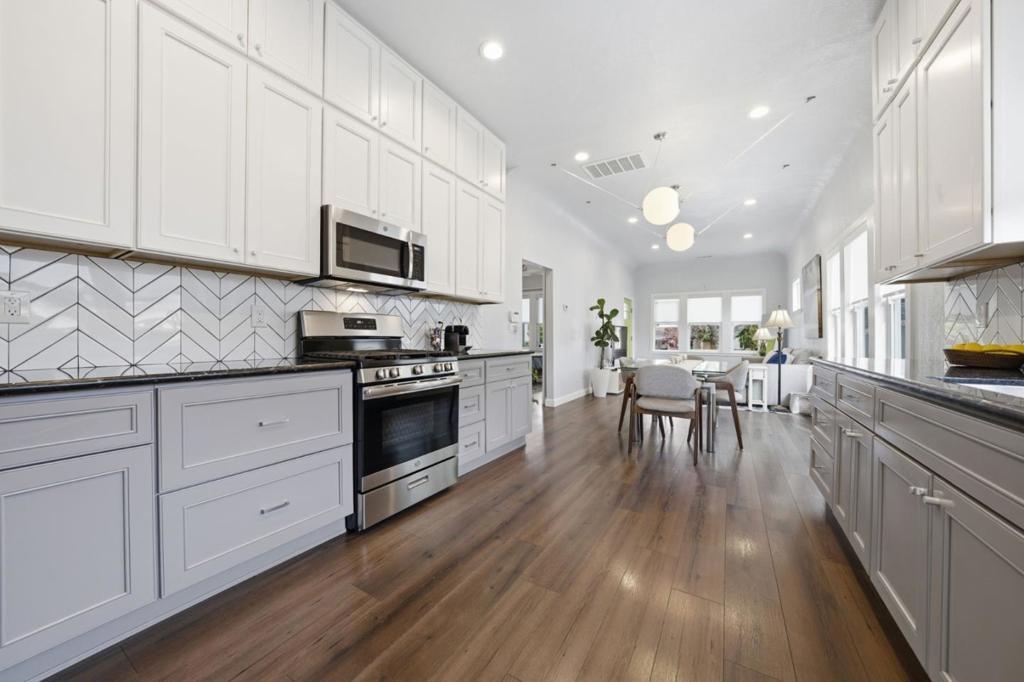 This absolutely charming meticulously maintained home remodeled in 2019 just moments away from iconic Japantown is a move in ready gem! Oozing with the charm of a traditional home but with all the modern amenities. Beautiful high ceilings with Italian pendant lighting, completely open living/dining/kitchen making it feel even grander. Spacious gourmet kitchen with copious cabinetry to the ceiling and stainless appliances with separate laundry at rear. 3 light and bright bedrooms and both bathrooms offer a calm, spa-like feel. Gated off street parking with ample parking space and large carport at rear of the drive next to the manicured private garden. Masses of curb appeal. A must see!