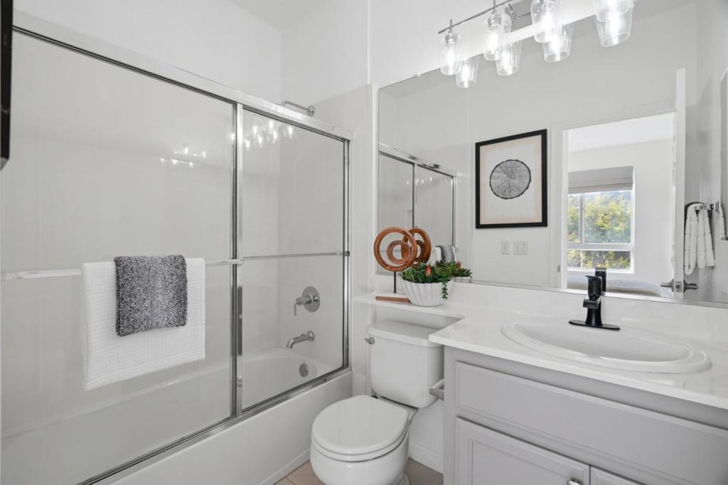 Light-filled & tastefully updated, this END-UNIT condo offers a fresh, modern feel & is move-in ready in the desirable Lancaster Gate community of Communications Hill. Fresh interior paint, an open layout, and abundant natural light create an inviting space. Dual primary suites offer a flexible floor plan suited for modern living. The kitchen features granite countertops, bar seating, recessed lighting, stainless steel appliances, and a dual-basin sink. The living area showcases laminate flooring, a modern light fixture, and space for a home office, plus a downstairs half bath for guests. Interior highlights include an August WiFi smart lock, Nest thermostat, Water Softener, FLOW Motion Sensor Kitchen Faucet, and Roman shades in the upstairs bedrooms. Enjoy in-unit LG washer and dryer. The primary suite features a spacious walk-in closet, plush carpet, and vaulted ceilings. A secondary bedroom with private bath offers comfort for guests or family. Attached two-car garage with EV charger. Located in the lower portion of Communications Hill for added privacy, near the Grand Staircase and scenic walking paths. Easy access to 87, 101, Capitol Expressway, and VTA light rail. Turnkey home with a well-managed HOA and strong reserves.