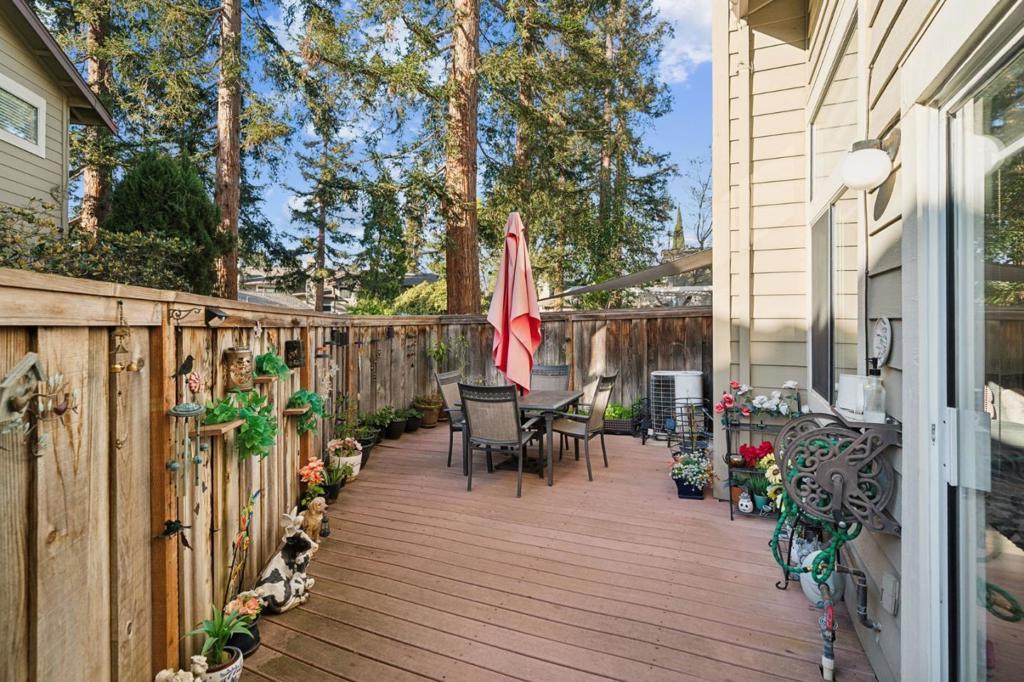 Gorgeous 3 Bedroom, 2.5 Bath Townhouse in South San Jose. Quiet corner lot location with lots of natural light. Gourmet kitchen with granite countertops, gas stove/range, built in microwave, and lots of cabinet space. Informal dining area and formal dining room. Laminate flooring in the living room, wood burning fireplace, recessed lighting, and ultra high ceilings. Spacious backyard area with a built in composite deck and lots of room for planters, patio furniture, and BBQ equipment. Master bedroom suite showcases a spacious walk-in-closet, dual sinks, and a roomy walk-in shower. Indoor washer/dryer area with built in laundry storage space. Updated lighting fixtures throughout and central A/C. Clean side-by-side 2 car garage. Close distance to VTA, Hwys 280/680/87/85, Cottle Park, Tennis Courts, Edenvale Gardens, Walking Trails, numerous restaurants/shopping centers, and a short drive to major high-tech companies. Pet friendly community with resort style pool area, mature trees, well maintained greenbelts, and very low HOA fee at $374/month.