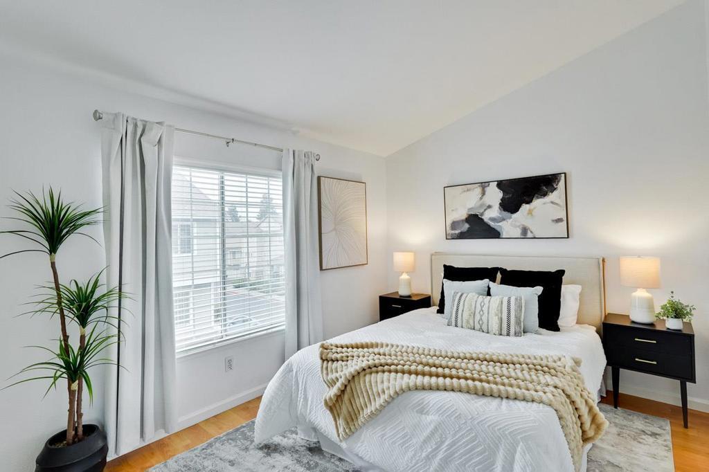 Introducing a gorgeous well-maintained multi-level property in San Jose featuring two ensuite bedrooms and 2.5 baths, thoughtfully designed with laminate flooring throughout. The home offers a separate living room with gas fireplace, a dining room with a gorgeous chandelier, a gas range, refrigerator and stainless-steel dishwasher in the kitchen. Enjoy central air conditioning and forced-air heating, plus a private laundry area on the upper level with washer and dryer included. Step out to the balcony deck, store belongings in large closets, and park easily in the attached two-car garage with garage door openers. Community amenities include a pool, nice landscaping and monitored parking; HOA dues cover garbage service. Lots of natural light in this unit make it very​​‌​​​​‌​​‌‌​​‌​​​‌‌​​​​​​‌‌​‌‌​​‌​​​‌‌​ move-in-ready.