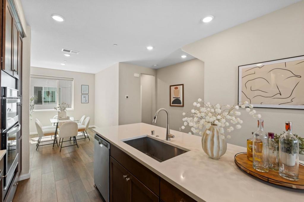 *Bright, modern living in a thoughtfully upgraded 7-year-new Pulte home. *This thoughtfully upgraded home is designed for comfort and functionality. A versatile ground-level bedroom with en-suite bath is perfect for guests, a private office, or multi-generational living. The open-concept main level features high ceilings, recessed lighting, & upgraded flooring. This home features approximately $35K in builder upgrades, enhancing style and livability beyond standard models. *The chefs kitchen shines with a large center island, quartz countertops, stainless steel appliances, stylish subway tile backsplash, abundant cabinetry, & a pantry. Upstairs, the spacious primary suite offers two walk-in closets & a dual-sink vanity, with an additional en-suite bedroom providing extra privacy. *Premium features include in-unit laundry, a standard water heater, owned Tesla solar panels, & a 2-car side-by-side garage with Level 2 (240V) EV charging. *Enjoy a vibrant community with access to a city park, dog park, clubhouse, BBQ area, garden, & playground. Walking distance to private schools and VTA Light Rail, with easy access to highways 680/101/87 & a short drive to Berryessa BART. Nearby shopping includes Safeway, Target, Sprouts, Costco, and fitness centers like Planet Fitness & VillaSport.