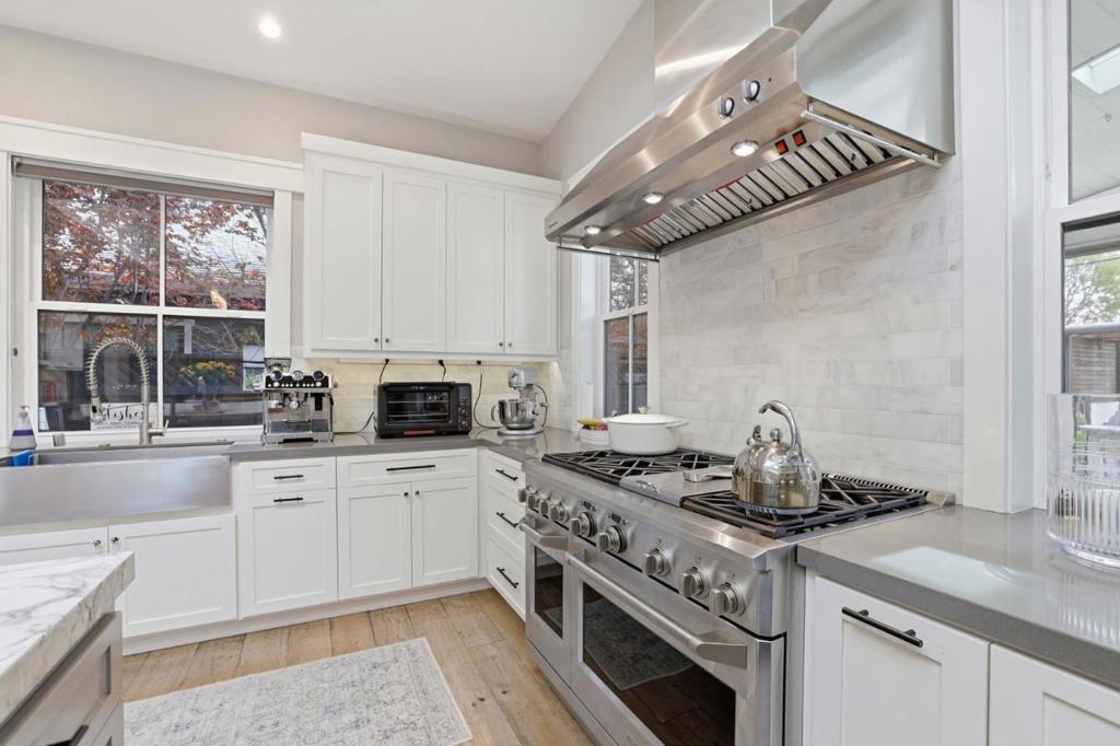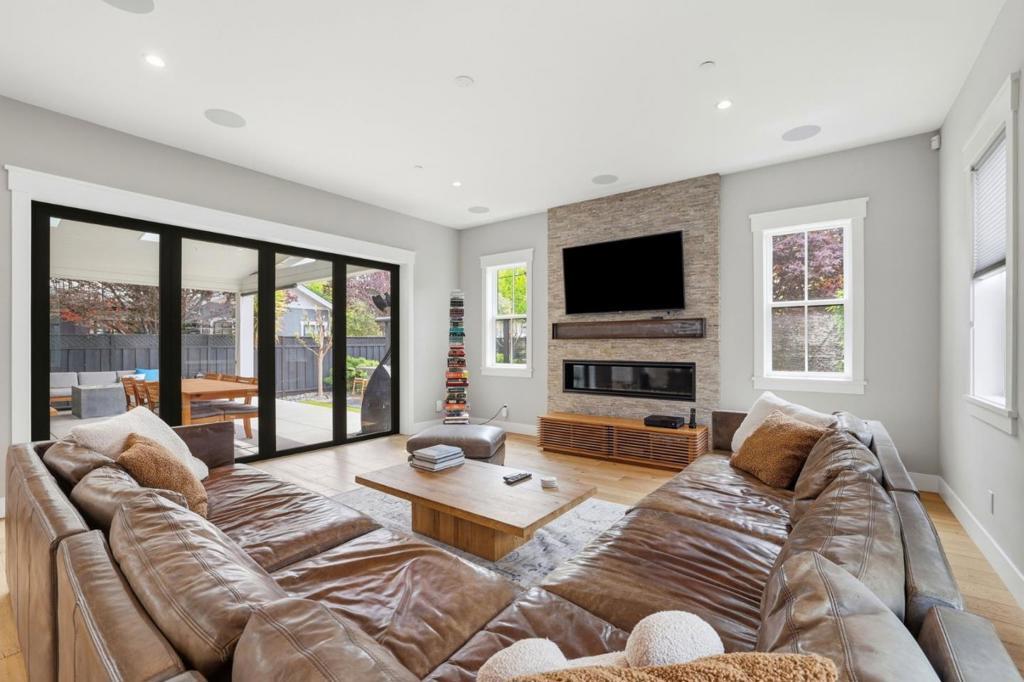 This beautiful modern farmhouse is located in one of Willow Glens great neighborhoods and features open modern design w/ 10' and vaulted ceilings, 8' doors, oak flooring, shaker cabinetry, large Kitchen, slab island counter and an immense great room with stacking doors opening to a covered patio with fire pit. Built by Union Pacific, one of Silicon Valley's premier builders that is known for quality construction. This 5 Bedroom 4 Bath is stunning with many custom touches including office/den w/dual work stations, Bedroom and full bath downstairs, an Au pair en suite bedroom. Primary suite with shower and separate tub. Kitchen features professional gas range with double ovens, custo refrigerator, 2 dishwashers, wine refrigerator, and ice maker. Rear yard features outdoor BBQ Island w/gas grill,smoker, and retractable awning and a faux lawn for water savings. Energy efficiency includes Tesla solar panels with two power walls and EV charging station in garage. This home is designed for seamless indoor/outdoor entertaining taking full advantage of the California Lifestyle.