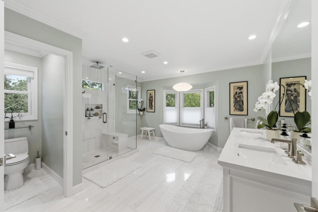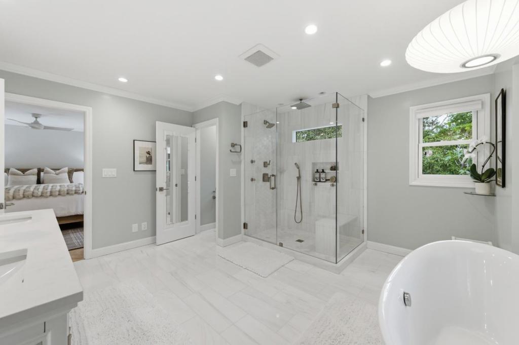 Hidden behind a private gate at the end of a long, tree-lined driveway, this Belmont Country Club estate offers a rare blend of privacy, sophistication & indoor-outdoor living. Set on a lush, fully fenced & gated parcel, the property features a beautifully updated main residence, a full in-law studio with a full bathroom & a detached office cottage. There is a beautiful front patio with views of the lush greenery. The main level showcases a formal entry, a grand living rm. with a gas granite slab fireplace, maple hardwood floors & abundant natural light, with peek-a-boo Bay & treetop views. The dining area flows seamlessly into a chef's kitchen with custom cabinetry, Quartzite counters, a large island & high-end appliances, including Wolf and Sub-Zero. The primary suite offers a serene retreat with a sitting area, walk-in closet, spa-inspired bath with soaking tub, and marble finishes & French doors to the patio. A 2nd bdrm. & full bath complete the main level, while the upper-level ensuite bedroom enjoys sweeping views. Outdoor spaces include a pergola-covered patio, a spa, a hidden retreat, a sprawling lawn, mature landscaping, multiple entertaining & private secluded areas. Additional features include Solar panels (owned), EV charger, A/C & gated parking for multiple vehicles.