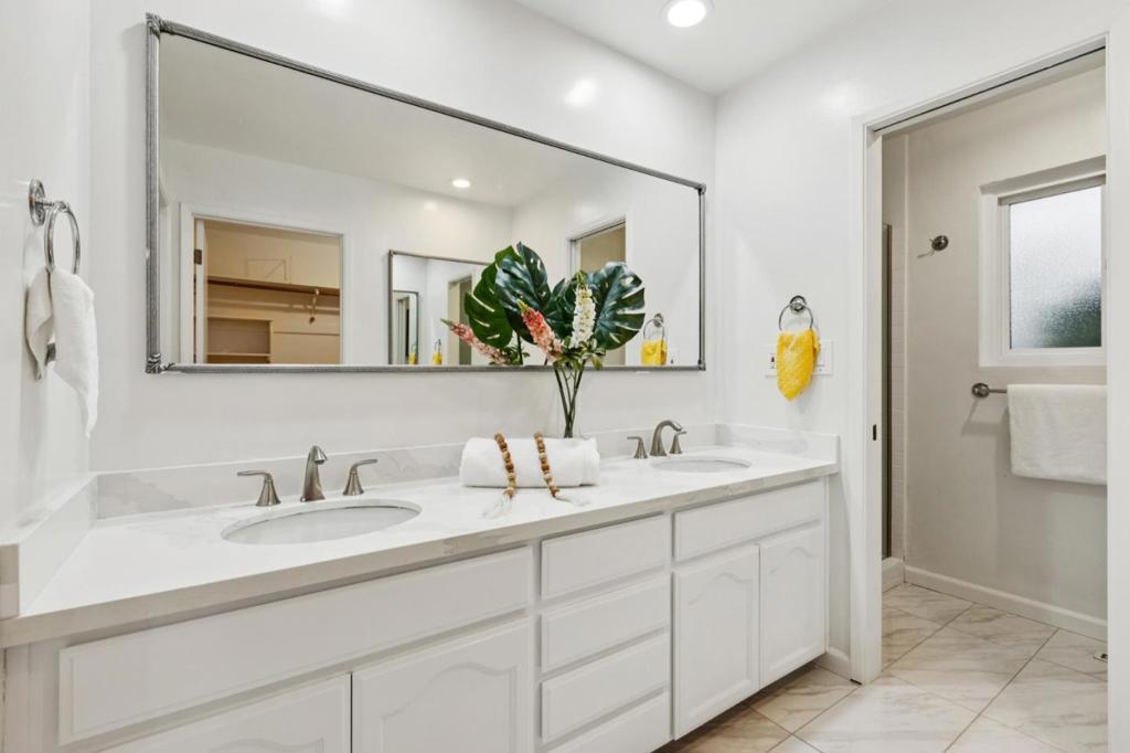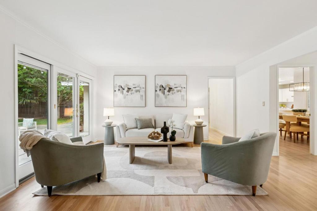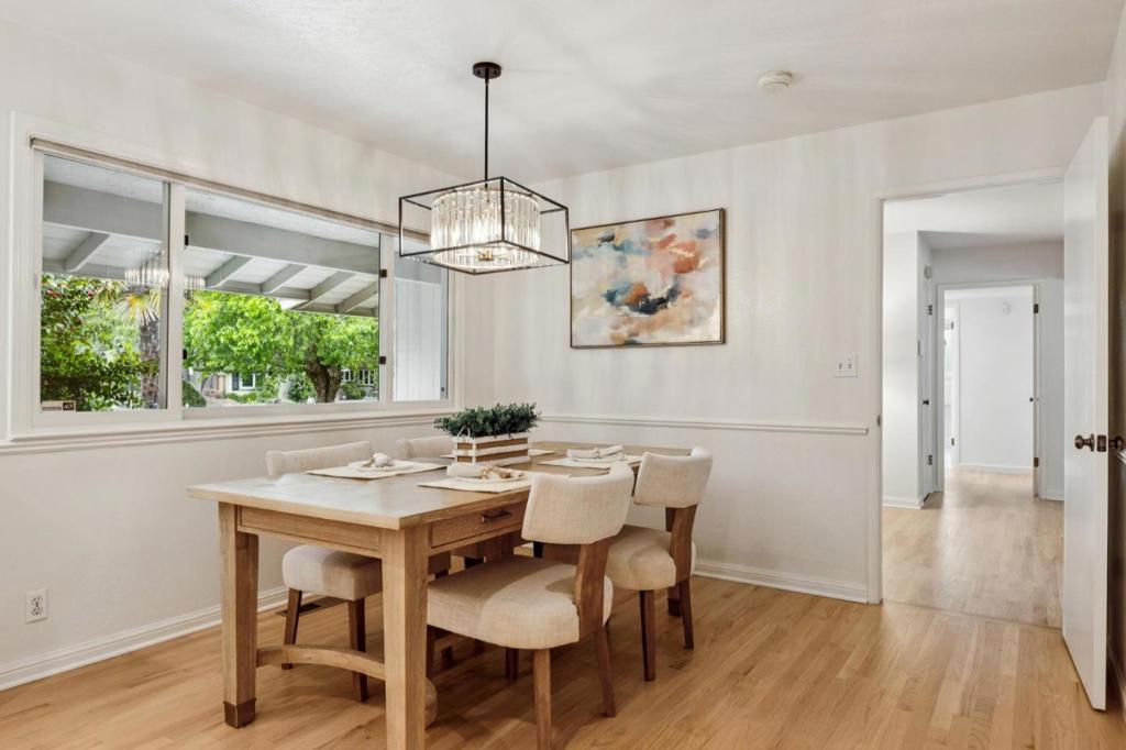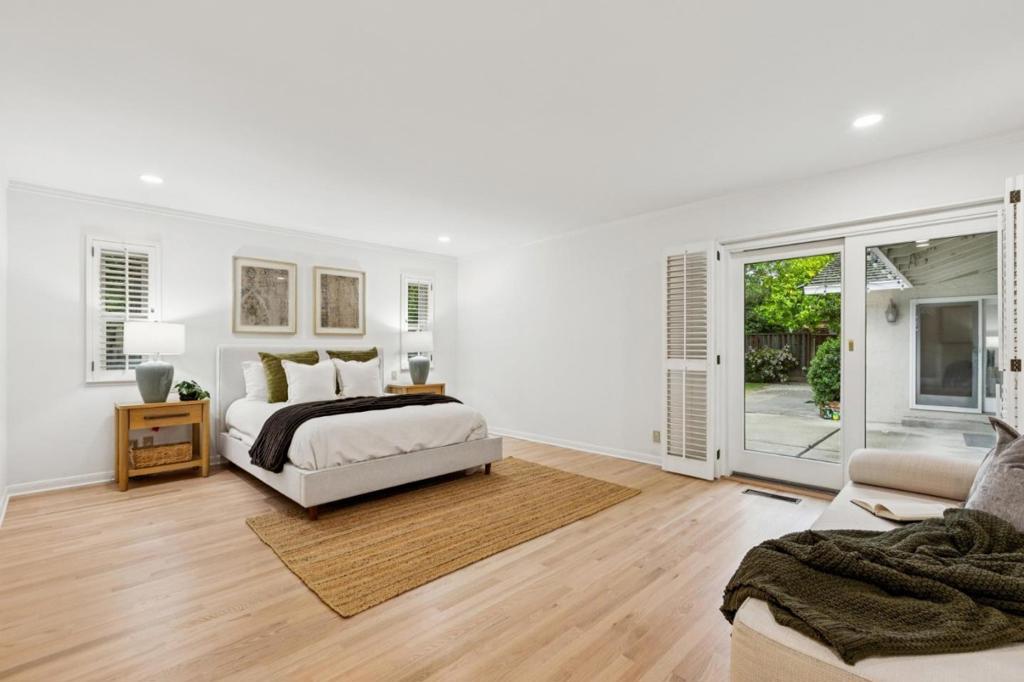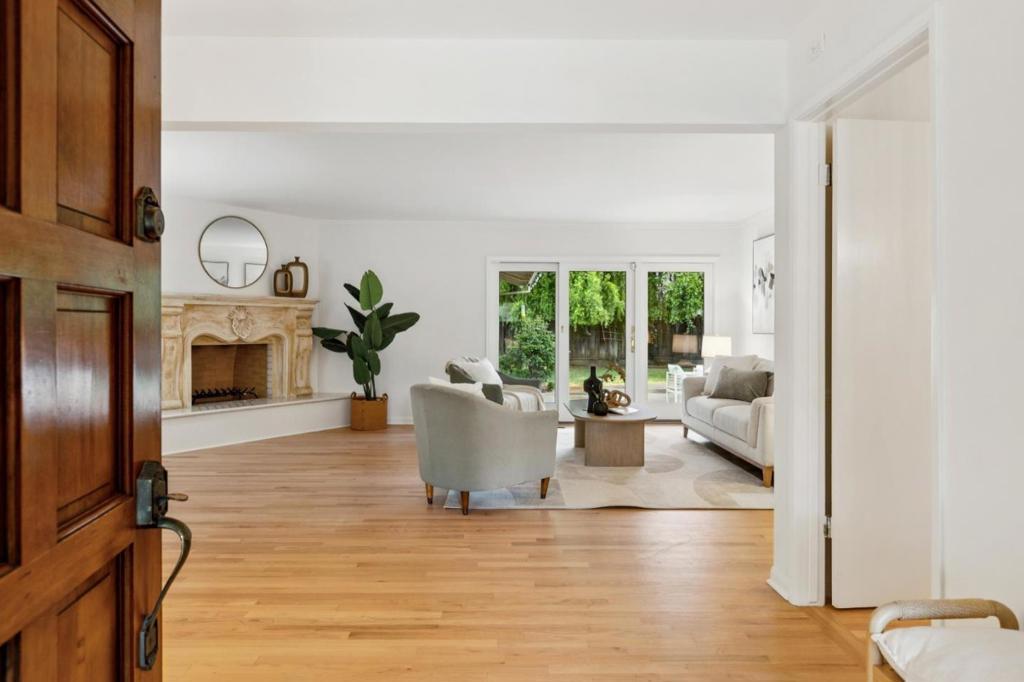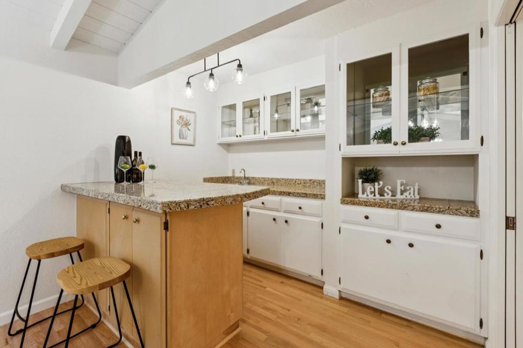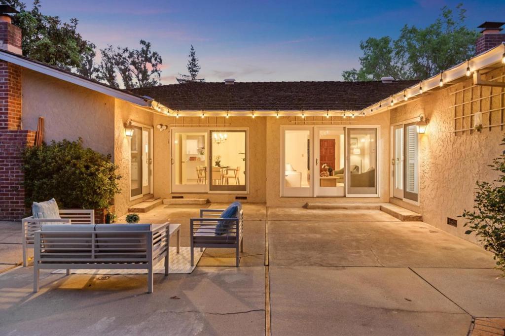 Welcome to 12304 Saratoga Creek Dr, a beautifully updated single story home located in Saratoga Woods. This 4 bed, 2.5 bath home features 2,631 sq ft of living space on a generous 10,922 sq ft lot. Bright and inviting, the home features Andersen windows, refinished hardwood floors throughout, fresh interior paint, new light fixtures, and dimmers for added ambiance. The newly remodeled kitchen showcases quartz countertops, center island, full tile backsplash, skylights, and stainless steel appliances including KitchenAid and LG. The vaulted family room with wet bar and custom wood-burning fireplace creates a warm gathering space, while a separate living room offers an additional fireplace and backyard access. The well designed layout places bedrooms on one side for privacy. The spacious primary suite features backyard access, walk in closet, and an updated bath with double sinks and a large shower. Enjoy seamless indoor outdoor living with a beautifully landscaped backyard and lemon tree. Conveniently located near Saratoga Woods Swim Club, Prospect High, parks, shopping, dining, and easy access to Lawrence Expressway. Dont miss out!