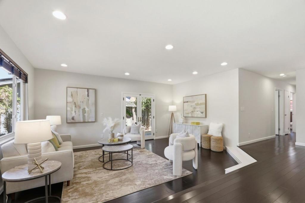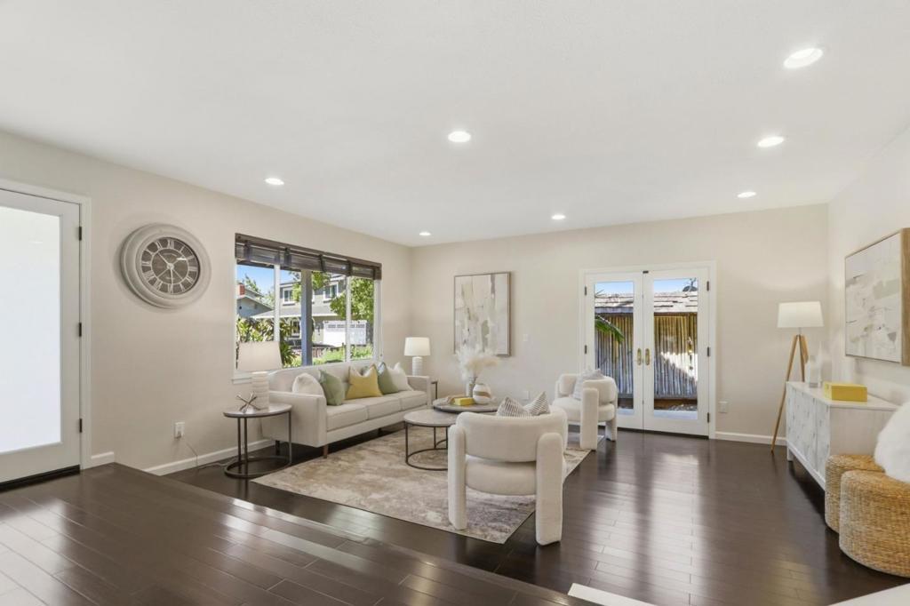This beautifully updated single-story home offers comfort, style, and exceptional curb appeal with picturesque hill views. Inviting open floor plan showcases rich hardwood floors, recessed lighting, and a light-filled LR with French doors that frame the scenic surroundings, while the cozy family room is anchored by fireplace with a stacked-stone surround. The chefs kitchen featuring quartz countertops, maple cabinetry, a mosaic backsplash, and premium stainless steel appliances including LG, Whirlpool, and an EdgeStar beverage fridge. The serene primary suite offers private backyard access, walk-in closet, and a spa-inspired ensuite complete with a deep soaking tub and separate body-spray shower, Step outside to a true backyard oasis, where a painted wood deck, tranquil water feature, and covered pergola are surrounded by lush palms, bamboo, and Italian cypress, creating a private retreat perfect for relaxing or entertaining. Additional highlights include versatile side yards with tropical accents and a 16kw Generac generator, a two-car garage with epoxy floors and laundry area, Ecobee thermostat. Ideally located in Almaden Valley near Quicksilver County Park, Boulder Ridge Golf Club, and local shopping, and highly regarded schools including Simonds,Bret Harte & Leland.