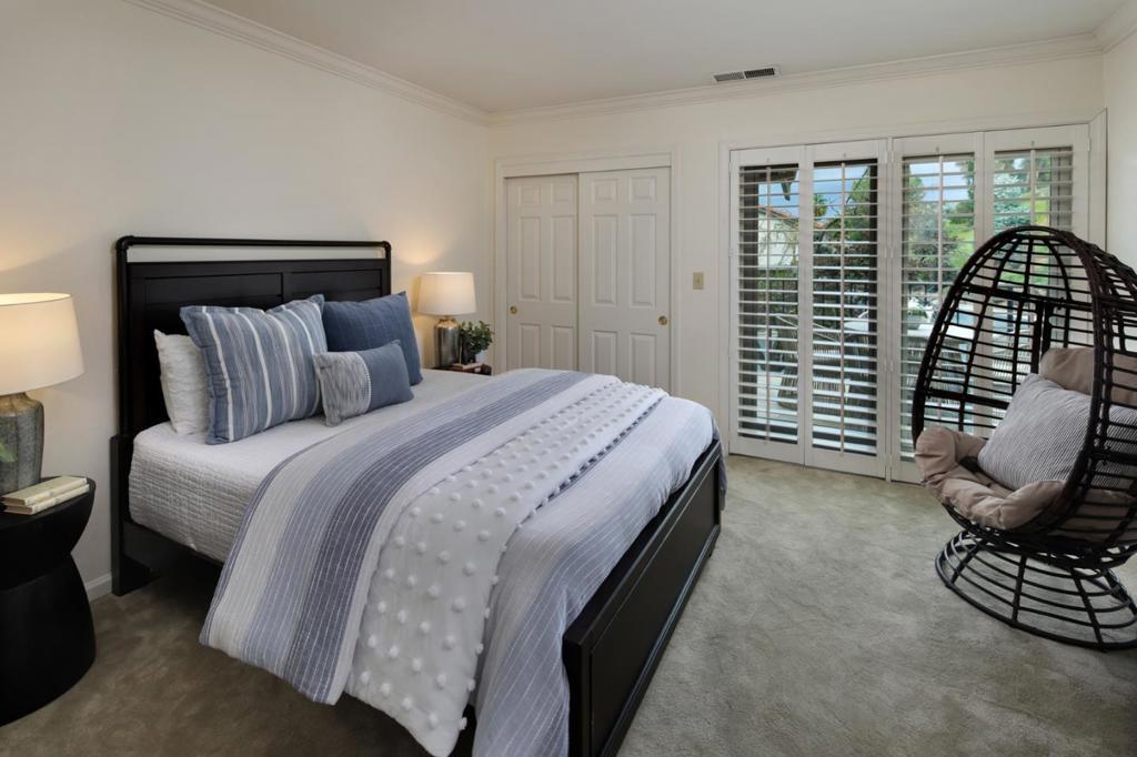 Spacious, updated and desirable Arroyo Rinconada end unit set in an idyllic cul de sac with creek/greenbelt views (Rio Vista = River View). Extensive upgrades throughout, including impressive kitchen, gorgeous hardwood floors, plantation shutters and new dual-pane windows and sliders. Open-concept floor plan features vaulted ceilings and picture windows, creating a wonderful indoor-outdoor feel. Remodeled gourmet kitchen features great counter space, 5-burner gas cooktop, Sub-Zero refrigerator, warming drawer and extensive custom cabinetry. Elegant living room includes a gas-burning fireplace and dining area that opens to a back patio, ideal for alfresco dining and gardening. A handsome open den/office area with fireplace looks out on greenery. Primary suite with vaulted ceiling, deck access, cedar-lined walk-in closet, dual vanity, skylight, spa-like shower enclosure and soaking tub. Guest bedrooms have ample closet space and deck access. Dedicated second floor laundry room. Resort-like amenities include a large community pool, spa, cabana and private tennis court set amid beautiful, well-maintained common grounds. Excellent schools. Conveniently located near La Rinconada Park, world-class restaurants, and shopping in Downtown Los Gatos, Saratoga Village and Downtown Campbell.