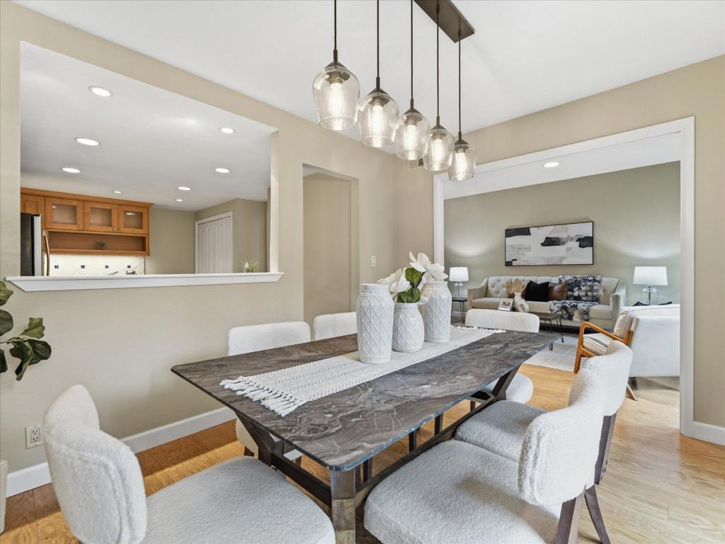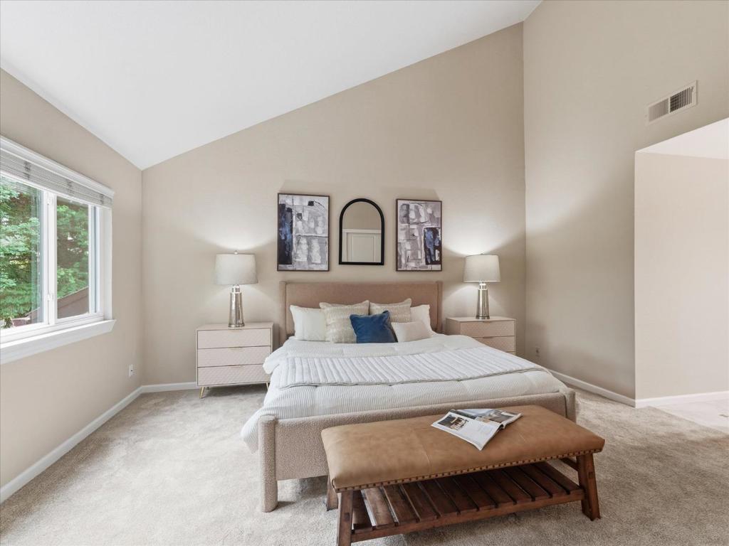 Welcome home to this exceptional, nicely remodeled townhouse in the highly coveted Mountain View Manors complex. Nestled within a quiet, tree-lined oasis, this stunning 3 bedroom, 2.5 bath home offers 1,475 sqft of beautifully appointed living space on a generous 4,400 sqft lot. From the moment you arrive, this home sets itself apart delivering privacy, elegance and space. It lives and feels like a single-family home. You will love the roaring high ceilings, tasteful upgrades, and seamlessly flowing living and dining area which makes it ideal for everyday living and entertaining. The spacious kitchen features modern finishes and generous counter space. Three bedrooms upstairs include a primary suite with en-suite bath and ample closet space.The beautifully landscaped, large patio is a rare outdoor sanctuary, perfect for dinner parties, morning coffee, and relaxing among lush greenery. An attached garage adds everyday convenience. Just minutes from Downtown Mountain View, enjoy world-class dining, the farmer's market, and easy access to Caltrain and VTA Light Rail. Google, NASA Ames, and top Silicon Valley employers are nearby. Families will love the acclaimed Mountain View Whisman and A+ rated Mountain View-Los Altos Union High School Districts, among the finest in the area.