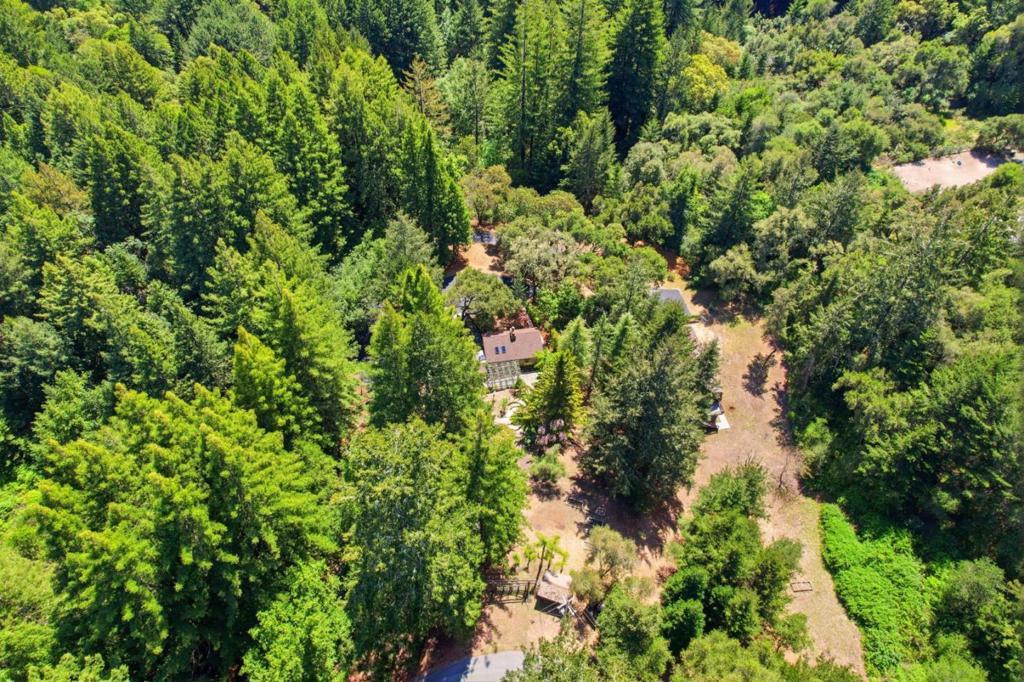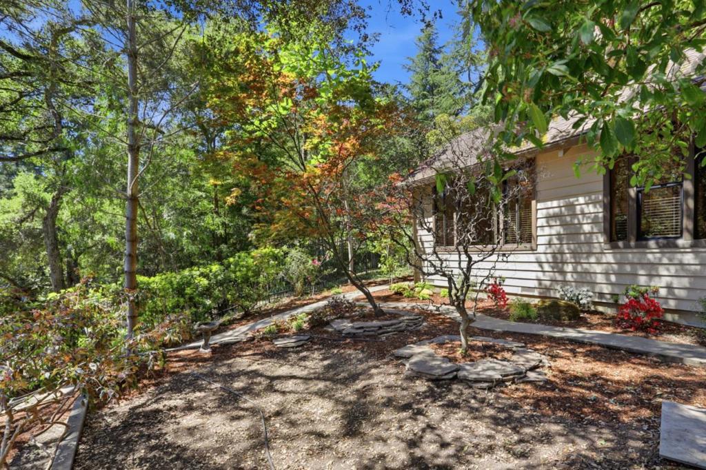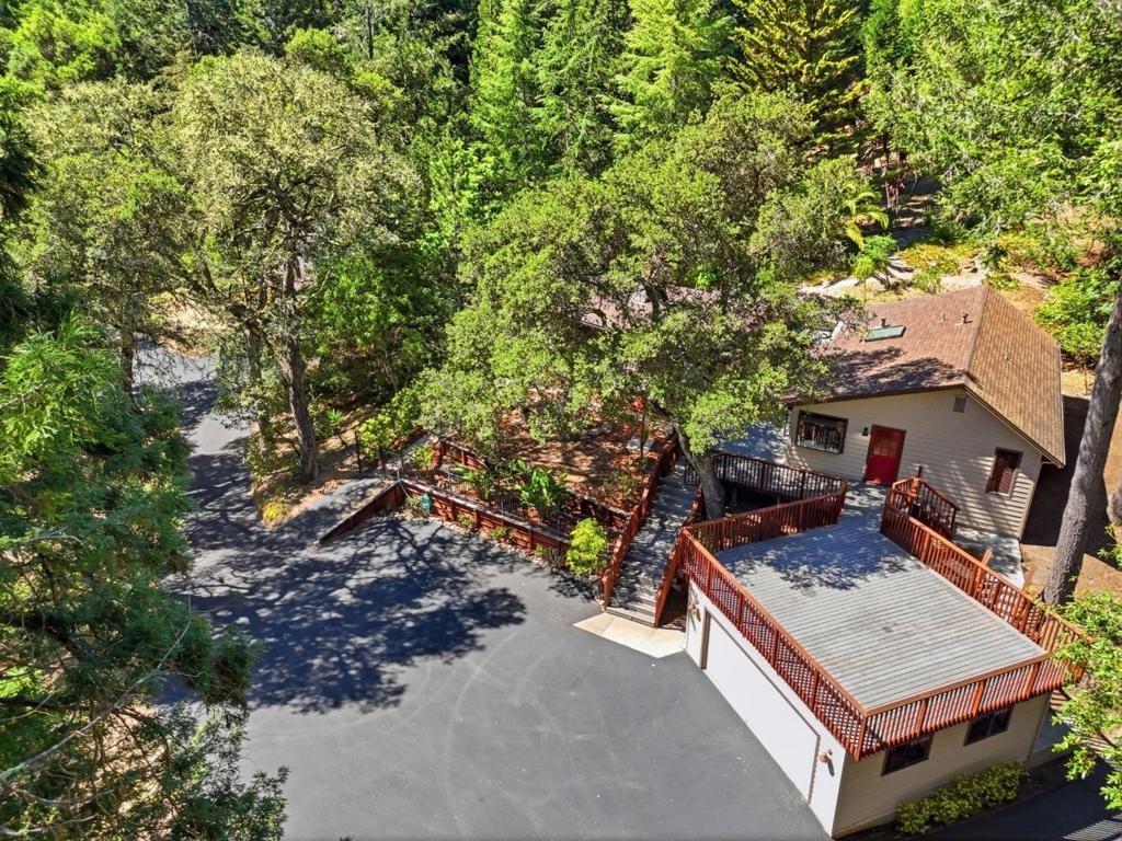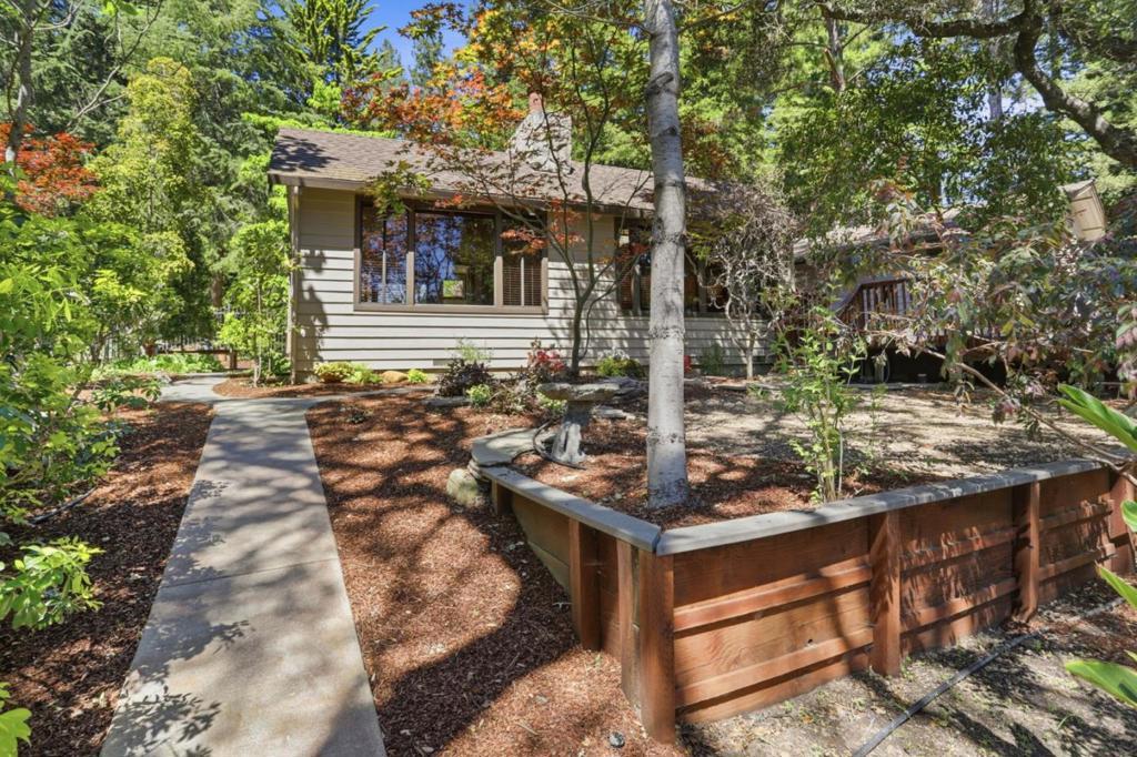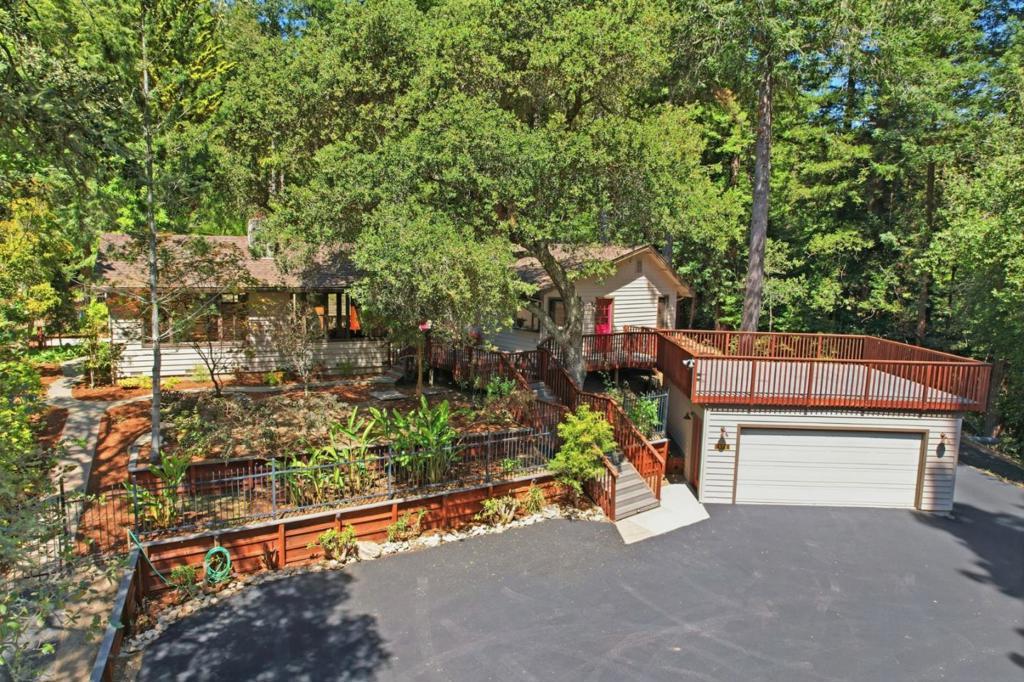Welcome to "Sunlit Glen", a Carmel-style family compound nestled on 2.91 sunny acres above Scotts Valley. Gently terraced grounds, winding pathways, and multi-level gardens create a private and peaceful setting. The main home is approx 1600sf, 3 bedrooms/2 baths. The family room has a beautiful floor-to-ceiling stone fireplace with fireplace insert. The kitchen has a new gas range, stainless steel appliances, ample storage, and a breakfast nook with garden windows. The primary bedroom has a fireplace and en-suite bath. Two additional bedrooms off the kitchen wing share a bathroom that also serves as a laundry room. The kitchen door leads to the 2-car detached garage. Also located on the property is a separate ADU - a private 2-story barn conversion with its own driveway, utilities, and address (973). It offers a modern kitchen with pantry, family room, and a large bedroom with a walk-in closet and en-suite bath. At the lower level is a two-car garage, bathroom, and flexible space for storage or gym. In the adjoining meadow there is room for an orchard, gardens, and/or animals. At the main entrance of the property stands the original Weston Road gate - a historical artifact. "Sunlit Glen" is a special property and is now ready for its new owners to enjoy for generations to come.