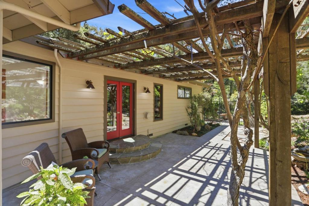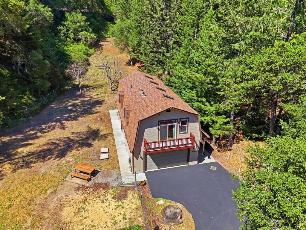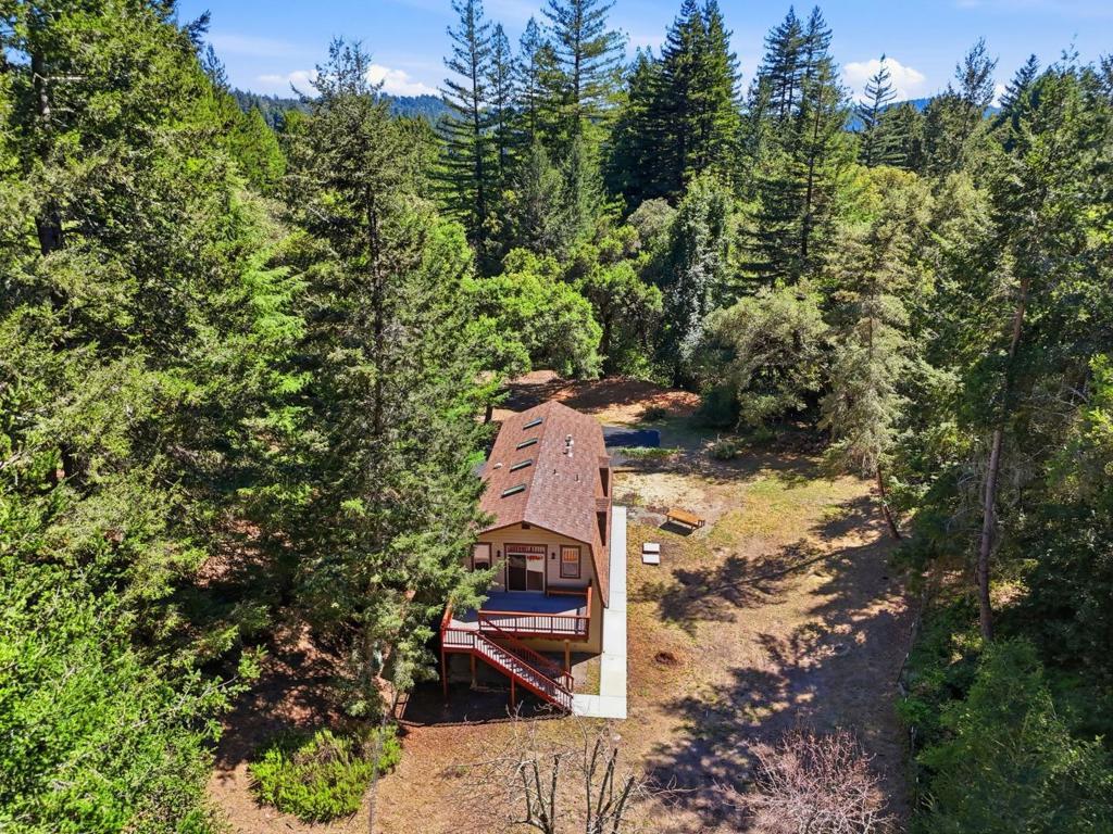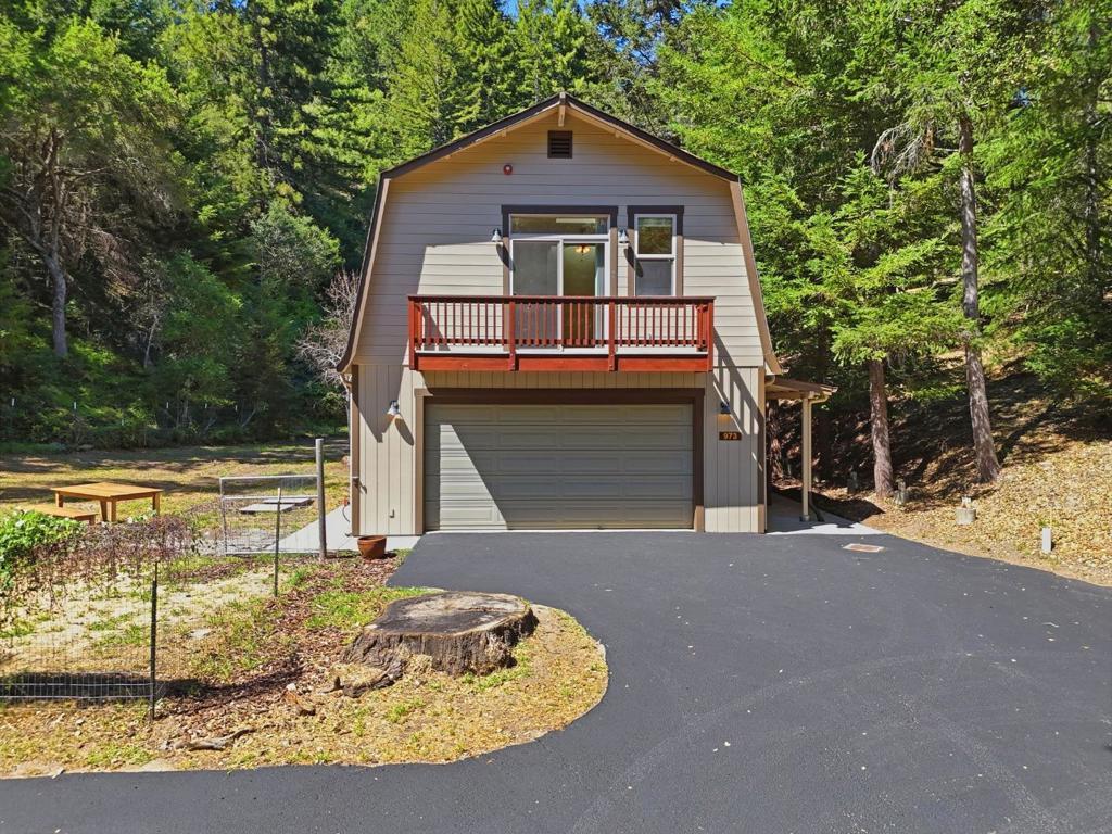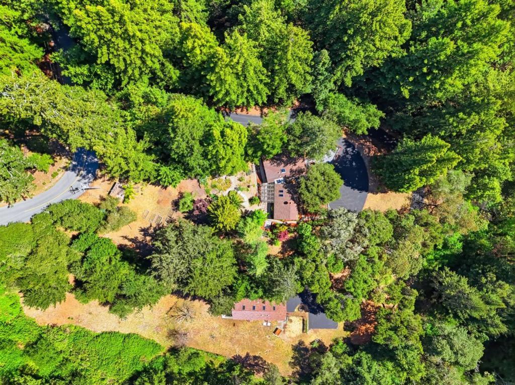 Welcome to "Sunlit Glen", a Carmel-style family compound nestled on 2.91 sunny acres above Scotts Valley. Gently terraced grounds, winding pathways, and multi-level gardens create a private and peaceful setting. The main home is approx 1600sf, 3 bedrooms/2 baths. The family room has a beautiful floor-to-ceiling stone fireplace with fireplace insert. The kitchen has a new gas range, stainless steel appliances, ample storage, and a breakfast nook with garden windows. The primary bedroom has a fireplace and en-suite bath. Two additional bedrooms off the kitchen wing share a bathroom that also serves as a laundry room. The kitchen door leads to the 2-car detached garage. Also located on the property is a separate ADU - a private 2-story barn conversion with its own driveway, utilities, and address (973). It offers a modern kitchen with pantry, family room, and a large bedroom with a walk-in closet and en-suite bath. At the lower level is a two-car garage, bathroom, and flexible space for storage or gym. In the adjoining meadow there is room for an orchard, gardens, and/or animals. At the main entrance of the property stands the original Weston Road gate - a historical artifact. "Sunlit Glen" is a special property and is now ready for its new owners to enjoy for generations to come.
