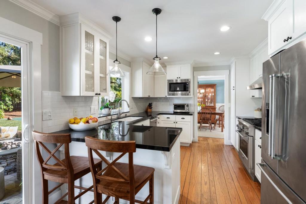 Nestled in a serene enclave on the Stanford campus, this beautifully updated 5- bedroom, 3-bathroom home offers sophisticated comfort and high-utility design.The heart of the home is the open kitchen and family room, where glass doors open to gorgeous gardens. The sun-drenched living room with skylights offers an airy sanctuary while the elegant dining room provides a refined backdrop for hosting. The upper level is a private retreat, featuring four spacious bedrooms including a primary suite with a walk-in closet. A fifth bedroom on the ground floor with a full bath and separate entrance is perfectly suited for guests or a home office. The mudroom and laundry suite keep daily life organized. Outside is a wonderful space to relax and entertain with a large patio, firepit, sport court, and built-in planter boxes. High-efficiency HVAC maintains comfort. Properties this updated, functional, and well-located are a very special find on Stanford campus! Available to qualified Stanford faculty only.