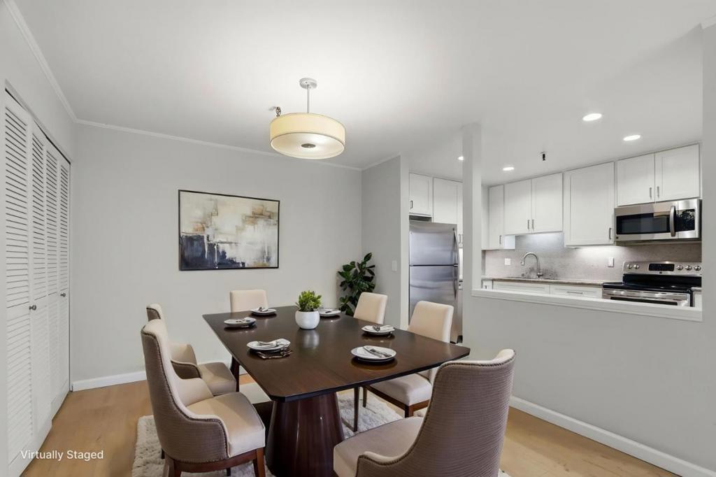 Welcome to 49 Showers Drive #E151 a well-updated 1-bedroom, 1-bath condominium in a desirable Mountain View community. The open, light-filled layout features a renovated kitchen with granite countertops and soft-close cabinetry, a dining area with extra storage, and a spacious living room with a gas fireplace, high ceilings, and patio doors opening to a private outdoor space. The bedroom offers generous closet space and second patio access, while the full bath features dual entry from both the bedroom and hallway. Additional highlights include in-unit stackable laundry, central heat and A/C, and a detached 1-car garage with ample guest parking. Community amenities include two pools, a clubhouse, and landscaped grounds. Unbeatable location close to Google, Meta, Highways 101 & 85, Central Expressway, and Caltrain, with downtown Mountain View, local dining, and Shoreline Park just minutes away.