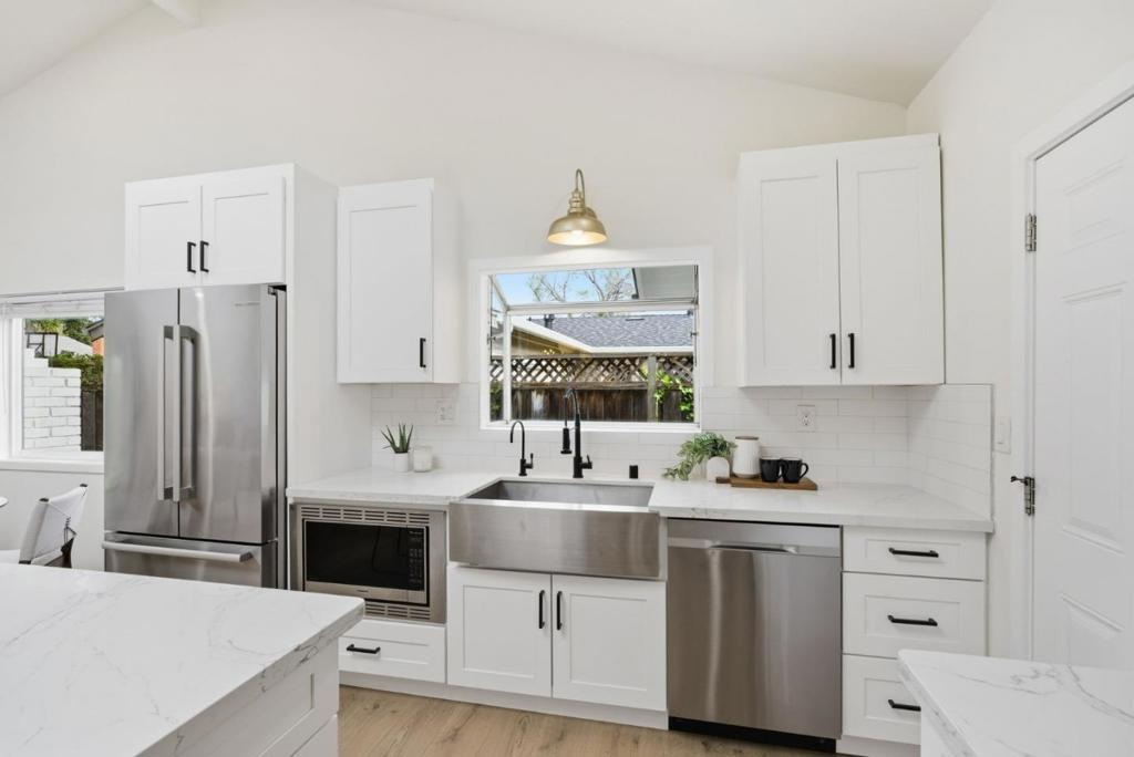 Welcome to 1193 Redoaks Drive, a thoughtfully remodeled home in the sought after Hamann Park neighborhood of West San Jose. This exceptional home has been fully renovated with modern finishes and offers 3 bedrooms and 2 bathrooms totaling 1,283sf on a 7,021sf corner lot. The inviting front porch opens to a bright, expansive great room with vaulted ceilings, two skylights, and a floor-to-ceiling tile fireplace with a gas insert. The chef's kitchen features white shaker cabinets, quartz countertops, an oversized island, and premium stainless steel appliances. The stunning primary suite offers vaulted ceilings, designer lighting, a walk-in closet, and a spa-inspired bath with a custom tiled shower. Step outside to your own private backyard retreat, complete with raised concrete patio perfect for entertaining. Additional upgrades include fresh interior paint, central heating, designer lighting, and wide-plank engineered oak flooring throughout. Ideally located just moments from Santana Row, Valley Fair, major tech campuses, and the vibrant dining and shopping destinations of The Pruneyard, Campbell, and Willow Glen. The location also offers convenient access to San Tomas Expressway, Hamilton Ave, HWY 880, 280, and 85, plus light rail and the best of Silicon Valley.