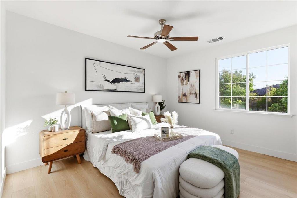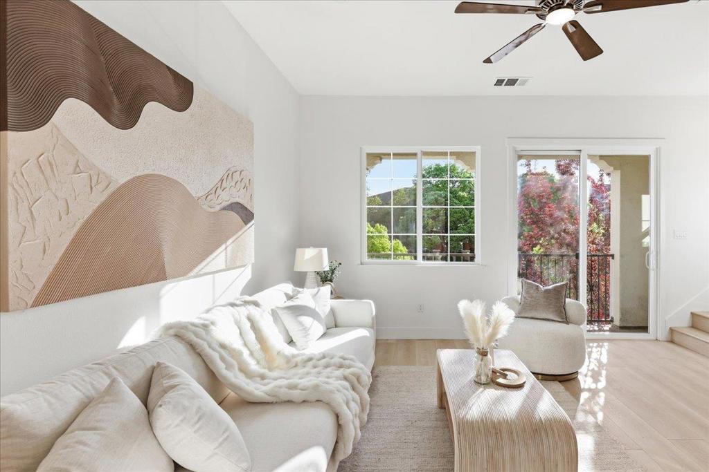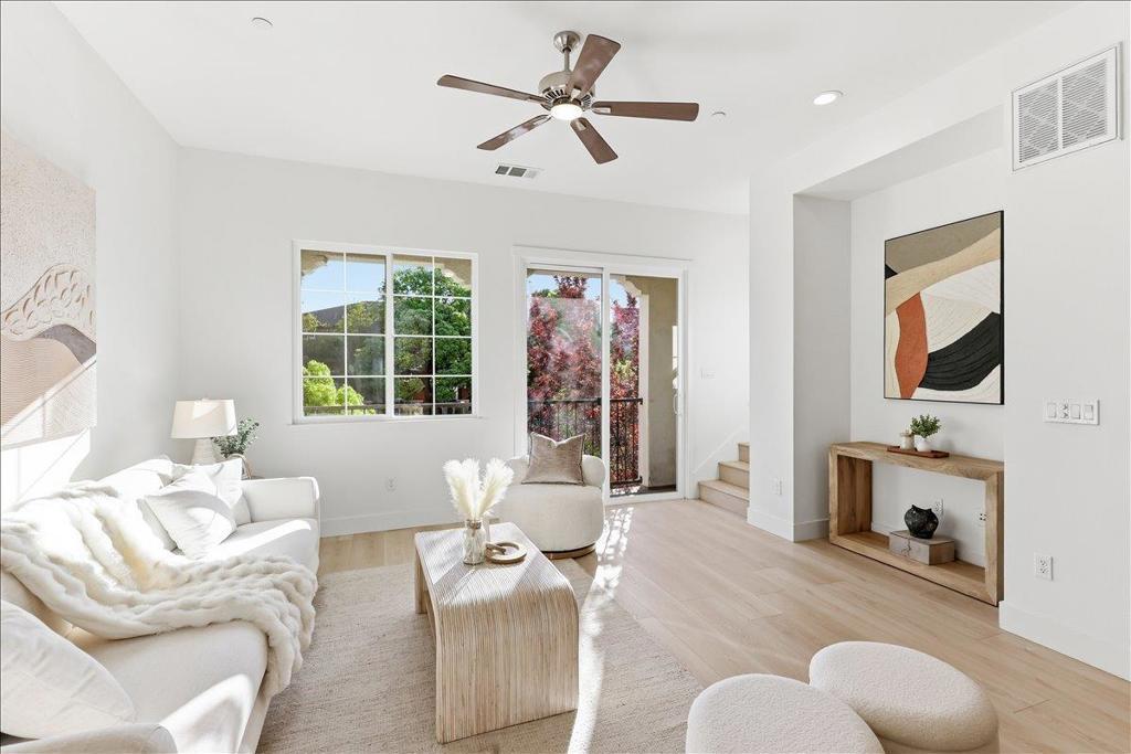 Experience modern, stylish living in this exceptional townhome located in the highly sought-after Evelyn Place community. This eight-year-old Townhome features 3 bedrooms, a first-floor office/den, and 2.5 bathrooms, offering a functional and well-designed layout. The gourmet kitchen is a chefs delight, showcasing a spacious island, ample cabinetry, and stainless steel appliances. The open-concept layout seamlessly connects the living, dining, and kitchen areasperfect for everyday living and entertaining. Upstairs, the bright primary suite includes a walk-in closet and dual-sink vanity. Recent upgrades include new interior paint, new flooring throughout, and a new dishwasher. Low HOA dues of $290 per month cover garbage service. Ideally located just minutes from major tech campuses including Google, Apple, LinkedIn, and Amazon, this home offers exceptional convenience. Enjoy walking distance to Google and Meta shuttle stops, as well as easy access to Downtown Sunnyvale, Caltrain, major freeways, Central Expressway, and Lawrence Expressway.  Don't miss out on this exceptional home!