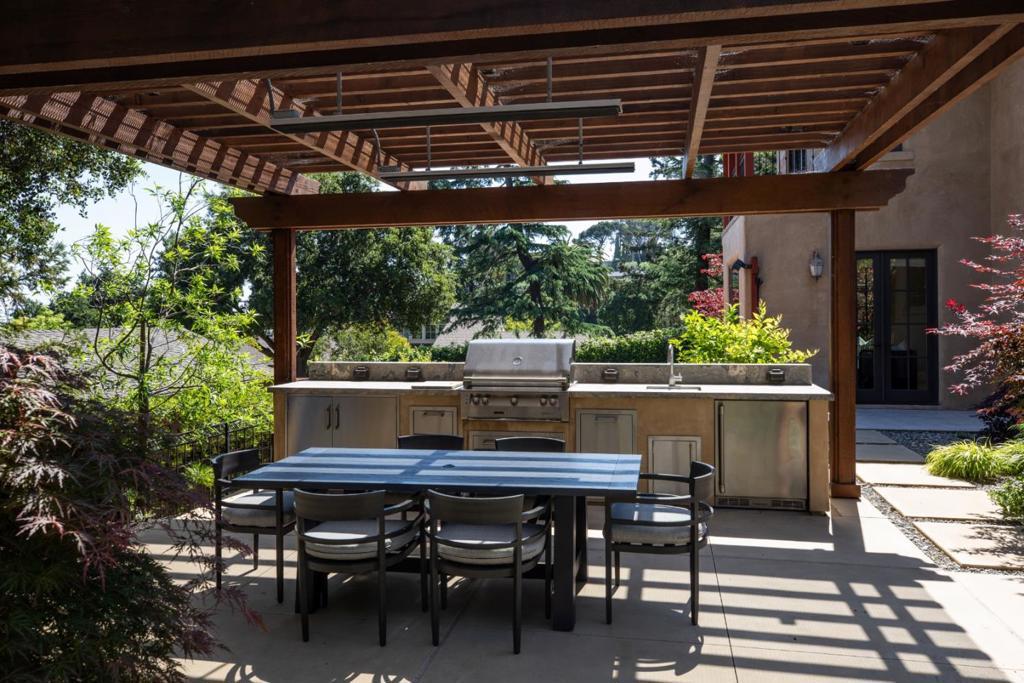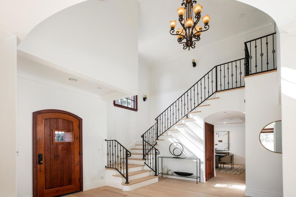 Expansive in scale and newly updated, this Mediterranean estate spans three levels with 4 bedrooms and 4.5 baths. Interiors feature refinished hardwood floors in a light matte hue and beautifully proportioned living spaces designed for both everyday comfort and entertaining. The newly updated kitchen is designer chic, complemented by a combination living room and family room with surround sound, formal dining room, plus a large recreation room on the lower level along with a cinema-quality theater. A private office or den adds to the appeal along with a newly updated full bath on the lower level, a main-level bedroom suite, and an upstairs primary suite with Bay views, plus two bedrooms and a bath. Outdoor living is equally inviting with multiple places for lounging and entertaining, including a large spa, fireplace terrace, premium sound system, and expansive outdoor kitchen. Two separate attached garages provide parking for 3 cars plus ample additional off-street parking. All of this is less than one mile from the downtown Los Altos Village and with access to excellent Los Altos schools.