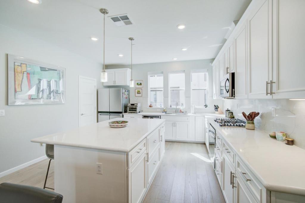 Experience modern living in Santa Clara's sought-after Naya community. Built in 2021, this bright and versatile 4-bedroom, 3.5-bath townhome lives like a single-family home with thoughtful design and quality upgrades throughout. The entry-level features a private junior suite ideal for guests, multigenerational living, or a home office. The open-concept main level offers abundant natural light, wide-plank flooring, and seamless flow for everyday living and entertaining. The modern kitchen is anchored by quartz countertops, stainless steel appliances, a large island with dual-sided storage, and a walk-in pantry. Sliding glass doors open to a sunny balcony, while the front porch overlooks a landscaped courtyard. Additional features include a tankless water heater, a whole-house water softener, custom closets, and an EV-ready 2-car garage. HOA covers water. Conveniently located near Central Park, Santa Clara Library, Kaiser, major employers, shopping, dining, and San Jose Airport.