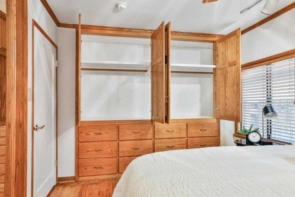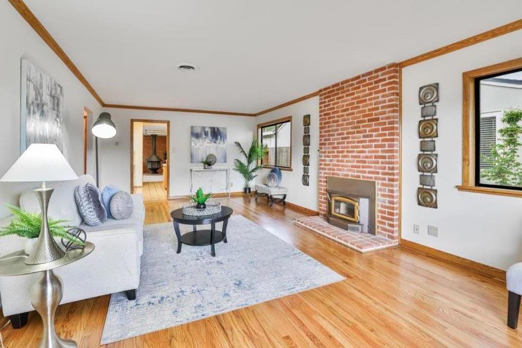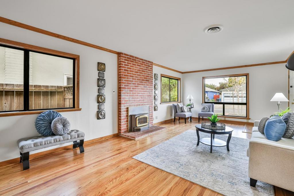 Santa Clara's highly sought after desirable Mariposa Gardens neighborhood, served by in-demand Sutter Elementary. This home is bathed in natural light and showcases beautifully refinished hardwood floors, elegant crown molding and a well-designed floor plan ideal for everyday living and entertaining. The gourmet kitchen features a central island, gas stove, Corian countertops, pantry and space for a refrigerator plus a separate freezer or wine refrigerator. The expansive family room is a warm, inviting space with a cozy free standing wood fireplace and wall-to-wall built in shelving. The private primary suite, located at the rear of the home, is a true retreat with three spacious custom closets, drawers, mirrored doors, double sink vanity, private toilet room and excellent storage. A secondary bedroom with a Murphy bed provides flexible space for an office/guests. Recent updates include fresh interior paint, new toilets & new vinyl plank flooring. Additional features include ceiling fans, central vacuum, wall insulation, copper piping, low maintenance backyard with deck, mature fruit trees, drip system and storage shed. Just steps from Mary Gomez Park & close to Central Park Library, Stans Donuts, shopping, major commute routes & top tech campuses. Enjoy Santa Clara low utilities