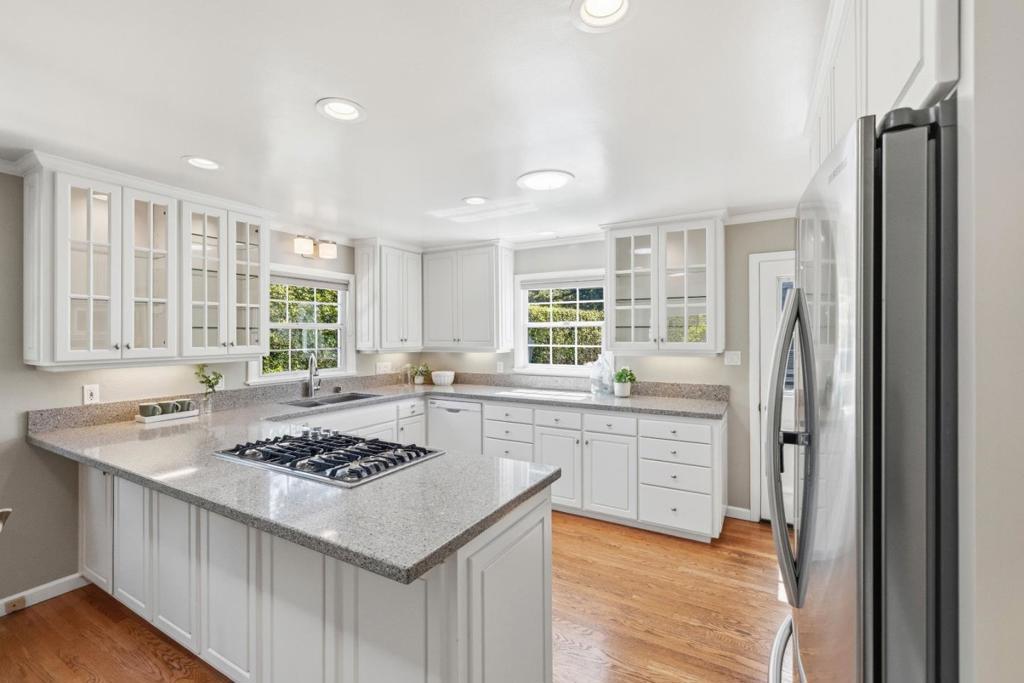 Tucked into one of Feltons most beloved neighborhoods, this 1949 home sits on a quarter-acre lot with an inviting covered front porch featuring craftsman beam detailing. Inside, the light-filled living room offers hardwood floors, a gas fireplace, and French doors opening to the dining area. Home-chefs will love the kitchen featuring elegant white cabinets with glass fronts, granite countertops, a gas cooktop peninsula, matching stainless steel appliances, and recessed lighting. The spacious bedrooms feature peaceful garden views. Outside, enjoy multiple paver patios, a hot tub, a raised garden bed, and sunny landscaping with Japanese maple, blueberry, persimmon fuyo, lime, lemon, azalea, and more. Two detached bonus structures include a workshop with built-in workbenches, an artist studio, and covered carport parking. All of this is just moments from the trails of Henry Cowell Redwoods State Park, shops, delicious restaurants such as The Grove, and the historic Roaring Camp Railroad.