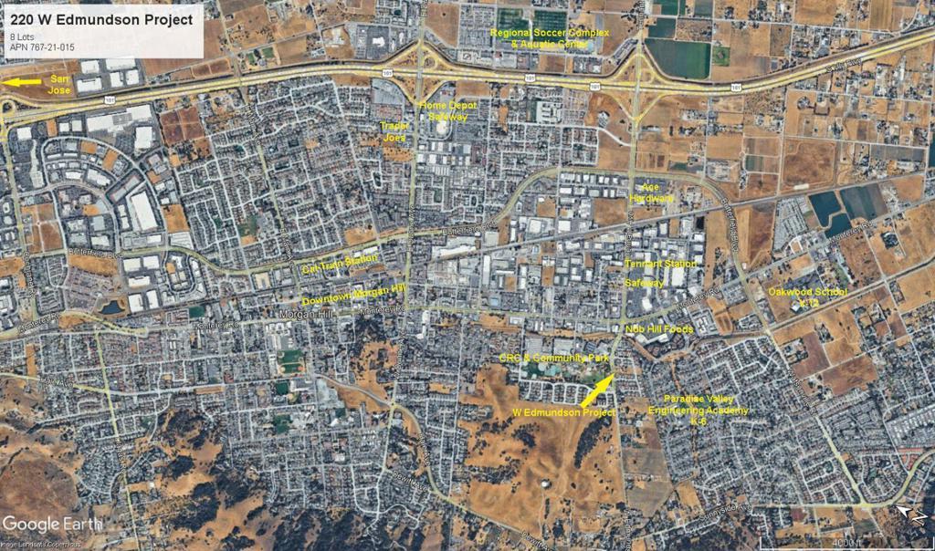 Positioned in desirable west-side Morgan Hill, the West Edmundson project presents a rare opportunity to acquire a nearly shovel-ready residential development in a supply-constrained Silicon Valley submarket. This thoughtfully designed community consists of 8 large single-family home lots, with parcel sizes reaching up to +-13,894 SF. The approved plans feature spacious homes ranging from +-2,794 to 2,904 SF, each offering 5 bedrooms and 4 bathroomsideal for modern family living and strong resale demand. The project benefits from an approved Tentative Map, with the Seller delivering a Final Map ready for recordation within approximately three months, significantly accelerating your path to construction. Ideally located directly across from the Morgan Hill Centennial Recreation Center, residents will enjoy immediate access to premier community amenities including a dog park, expansive community park, and sports facilities featuring basketball, tennis, and pickleball courts. The property is also conveniently situated near Tennant Station, offering shopping, dining, grocery, and everyday conveniences just minutes away. 220 West Edmundson represents an exceptional opportunity for builders and investors seeking a high-quality residential project in the heart of Morgan Hill.