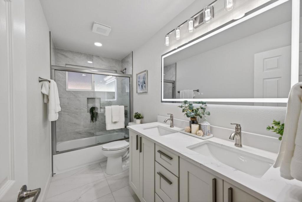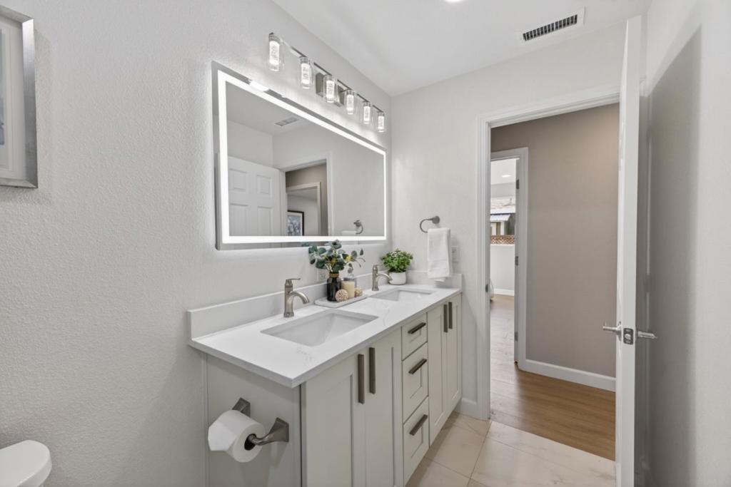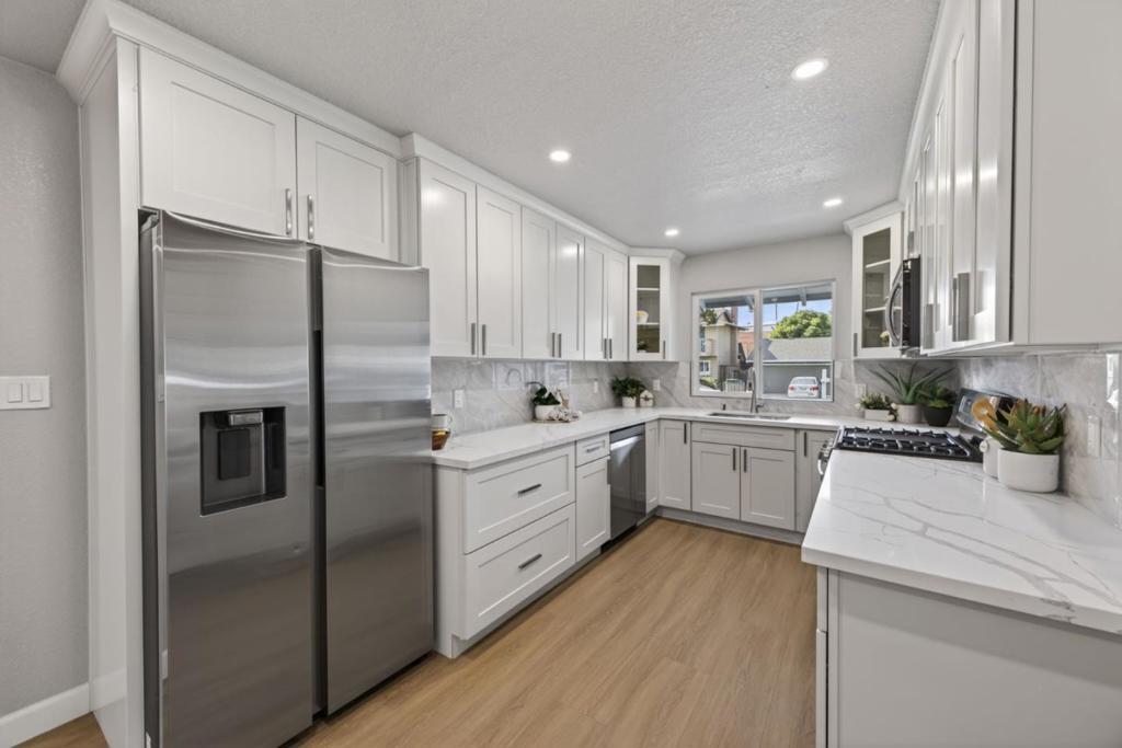 Beautifully remodeled 4-bedroom, 2-bath home offering modern design, quality craftsmanship, and a true move-in-ready experience. Bright living and dining areas feature wide-plank flooring, recessed LED lighting, fresh paint, and a new sleek electric fireplace. The designer kitchen includes custom cabinetry, quartz countertops with full backsplash, and new stainless steel appliances. Both bathrooms are fully renovated with contemporary finishes and LED mirrors. Major system upgrades include a new HVAC system, water heater, and 200-amp electrical panel with updated wiring. Renovations were completed with permits and final inspections through the City of Santa Clara. Additional features include double-pane windows and sliding doors, iron front entry door, new interior doors and hardware, and a finished garage with epoxy flooring, new door and opener, and laundry area. The exterior offers new concrete patio and landscaped front and backyard with sprinkler systems, ideal for outdoor living and gardening. Conveniently located near Apple, Nvidia, Intel, major highways, shopping, and dining.