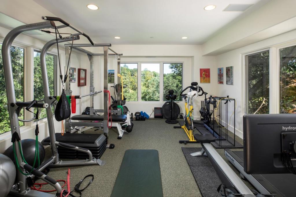 A Hilltop Home Shaped by Light, Landscape and Contemporary Architecture-Designed as a sanctuary for the senses, this 4885 sq ft, 2007 contemporary masterpiece rises from the crest of central Portola Valley. the custom architecture was crafted to invite tranquility, framing soft, filtered views of the surrounding landscape . Here, the rare luxury of expansive, level grounds that breathes in rhythm with its hilltop surroundingsa true haven of quiet elegance. This home is a gem! On the main level, the 11-foot-ceilinged public rooms include a formal entry, a large living room that doubles as a media room with 3 walls of glass sliding doors opening to the gardens, a formal dining room designed to seat 12, a chefs kitchen that faces a secret garden, and a family room facing the rear gardens. An open-tread staircase lined with clear glass panels connects the upper, main, and lower levels of the home. On the lower level, there is a recreation room, a wine cellar, full bath and, across a stone patio, a fitness studio with walk-out access to the rear grounds. 2 bedrooms and 1.5 baths on the main level and an upper level devoted to the primary suite with a large private balcony and a spacious office, perfect for todays work-from-home needs. Detached studio guest house with full bath.