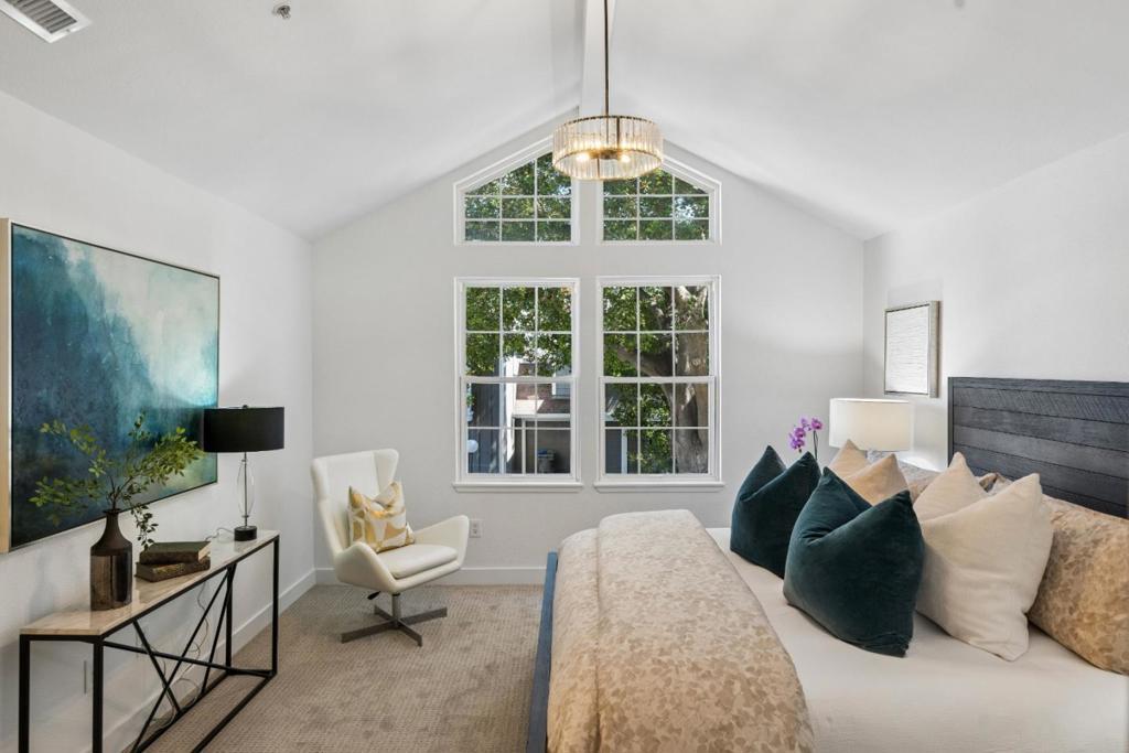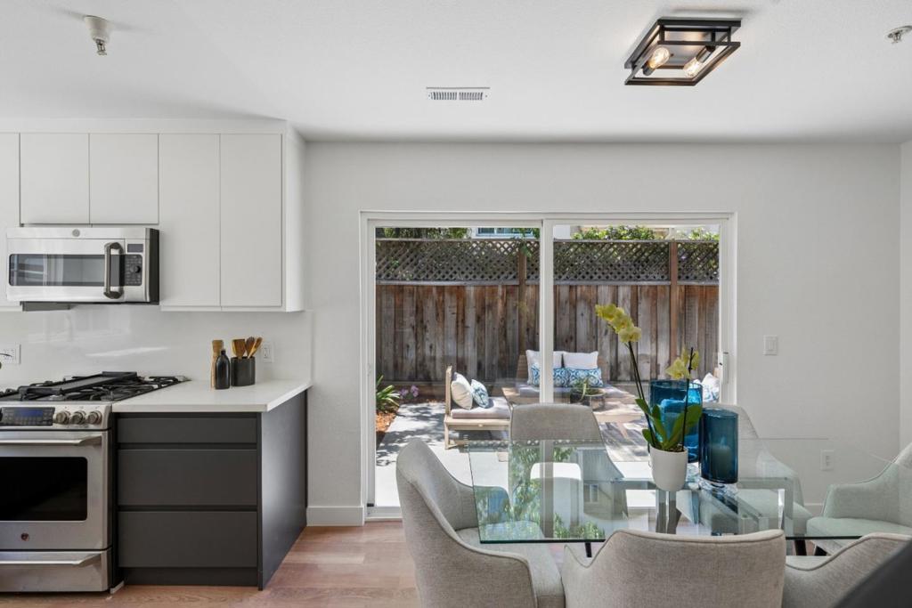 Located in one of Silicon Valleys most coveted locations, this exceptional end-unit offers a rare combination of contemporary design and everyday functionality. Featuring approximately 1,400 square feet of thoughtfully designed living space and a serene, peaceful setting, this is one home you will not want to miss. Meticulously upgraded throughout, this outstanding residence truly embodies the phrase move-in condition. The kitchen features a seamless blend of modern elegance and functionality, along with stainless appliances, quartz countertops, and contemporary European style cabinetry. The floor plan is outstanding and includes three expansive bedrooms with two and one-half modernized bathrooms. Additional luxuries include in-unit laundry, high-end appliances, and a temperature-controlled wine cooler, combining everyday convenience with sophisticated living. The private, low-maintenance rear yard is designed for both intimate relaxation and stylish entertaining. This boutique community is both private and convenient. Situated near Google, Apple and Facebook/Meta, and everyday essentials including groceries, coffee shops and restaurants are all within a short walk. Easy access to major highways and VTA light rail further enhances the appeal of this prime Silicon Valley location.