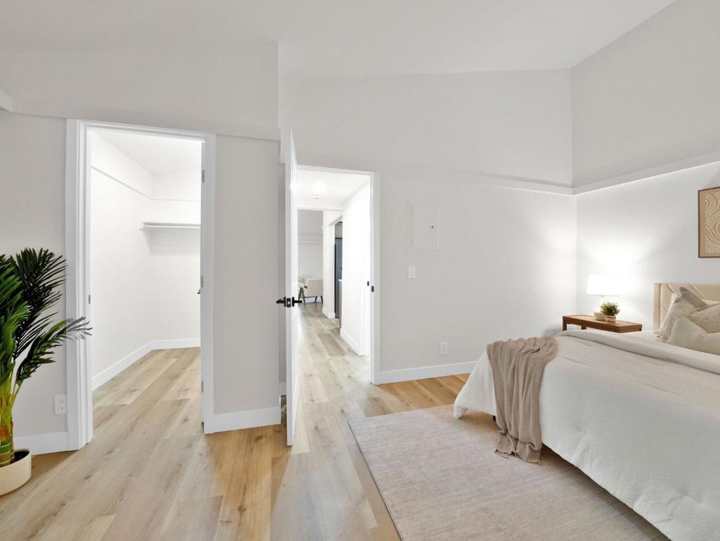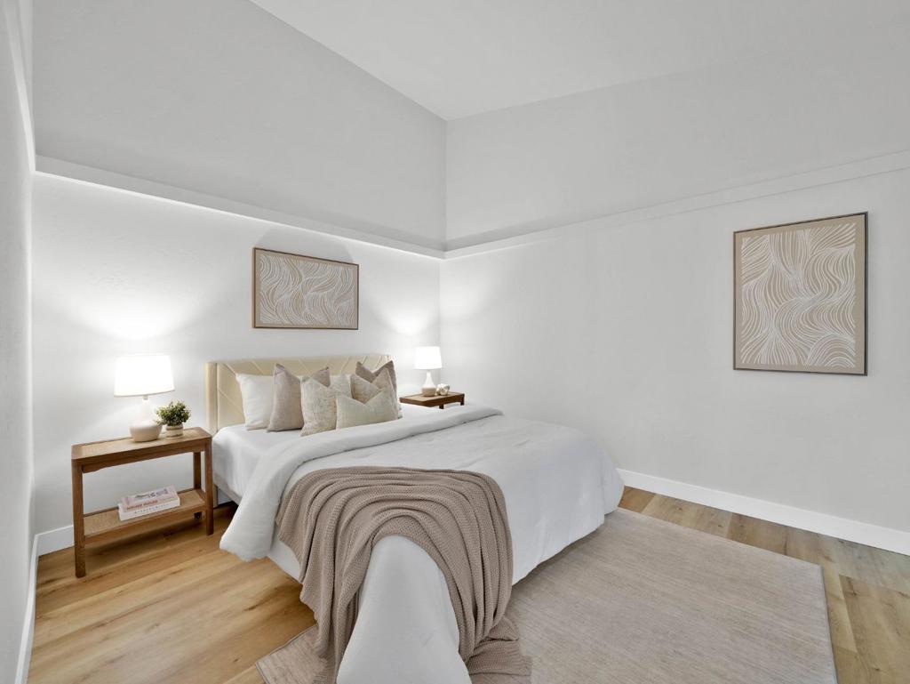 This beautifully remodeled One Bedroom, One bathroom, single-story, corner end-unit offers exceptional tranquility and privacy. An increasingly rare find! Featuring soaring ceilings, brand-new kitchen cabinetry, stylish countertops, and modern stainless steel appliances. The bathroom has been thoughtfully refreshed with a new vanity, fixtures, and toilet. Enjoy a spacious walk-in closet and multiple additional storage areas. A freshly painted interior, brand-new doors, trim, retrofit windows and sliding glass doors complete the refined transformation. Creating a seamless indoor-outdoor flow to an expansive private patio. Perfect for pets, entertaining, relaxing or enjoying your morning coffee in peace. Residents enjoy access to desirable community amenities, including a pool, clubhouse, EV charging stations and laundry facilities. All within a well-maintained and conveniently located complex. Ideally positioned just blocks from vibrant downtown Mountain View, offering acclaimed dining, shopping, access to Caltrain and light rail. Close proximity to major Bay Area employers enhances everyday convenience, with easy access to Highways 101, 85, and 237. A rare opportunity to own a turnkey, private retreat in one of the Peninsulas most sought-after locations!