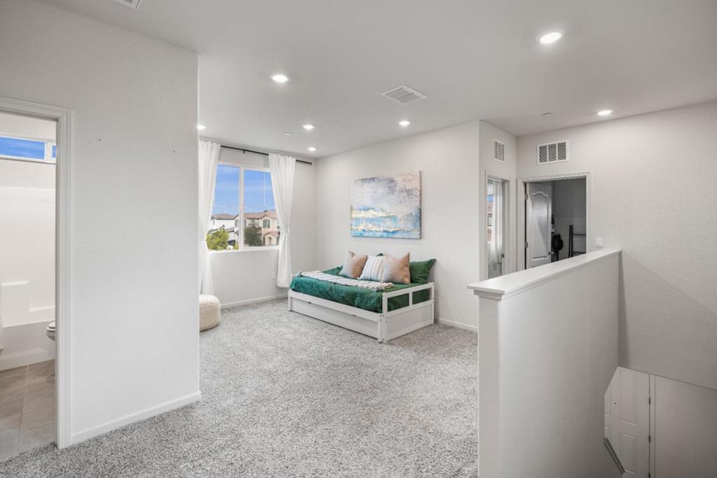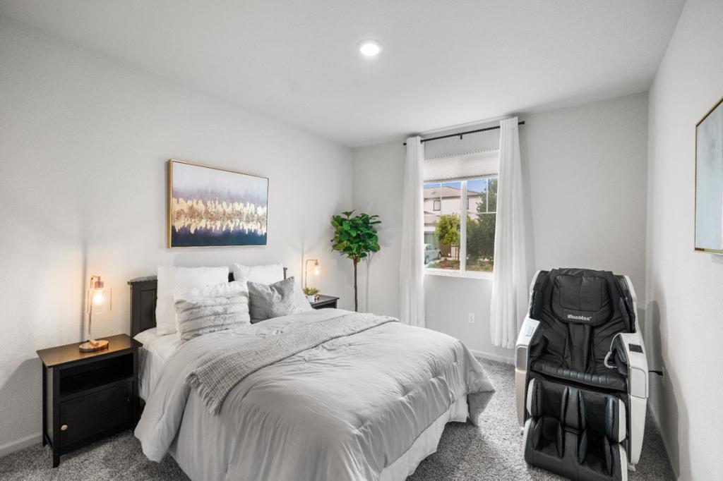 Welcome to this move-in-ready east-facing home in the gated Vines community in Oakley, featuring owned solar and modern upgrades throughout. Built in 2021 by Meritage Homes, this bright open-concept layout offers a spacious living area with vinyl plank flooring downstairs, upgraded recessed lighting throughout, and a sleek kitchen with granite countertops, stainless steel appliances, and a large island. A main-level bedroom and full bath provide flexibility for guests or multigenerational living. Upstairs features a spacious primary suite with dual vanities, soaking tub, and walk-in closet, along with two additional bedrooms, a loft, and a laundry room. Enjoy one of the largest lots in the community with a fully finished backyard, custom stone patio, mature passion fruit tree, and beautiful sunset views - perfect for relaxing or entertaining in a comfortably shaded outdoor space. Additional features include a Tesla charger, smart thermostat, and smart garage opener. Conveniently located with easy access to Highway 4, and minutes from Costco, Trader Joes, Safeway, The Streets of Brentwood, Big Break Regional Shoreline, Contra Costa wine country, farmers markets, and downtown Oakley.