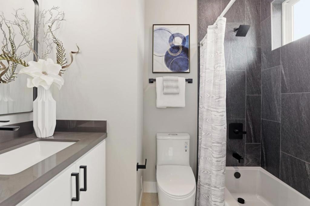 Gorgeous new construction in Campbell, near the Pruneyard and downtown with easy access to shopping, dining, and amenities. Highly regarded Cambrian schools. Bright interior with large windows, southern exposure, and three balconies. Main level features open living area. Kitchen includes polished porcelain countertops, peninsula and island, and custom cabinetry with ample storage. Brand-new Samsung and LG appliances: French door refrigerator, induction cooktop, oven, microwave, and dishwasher. Opens to living and dining areas for functional flow. Modern finishes throughout. Two bedrooms on the third level, each with its own bathroom featuring tiled finishes and quartz countertops. Washer/dryer on this level. Attached tandem 2-car garage with Level 2 EV hookup, storage, and epoxy flooring. Modern and energy-efficient features include Ring doorbell, mini-split HVAC, dual pane windows and solar options. Near parks, trails, restaurants, shopping, and local events, with access to major Silicon Valley employers and San Jose International Airport. Some photos are from model unit with similar floor plan; finishes may vary.
