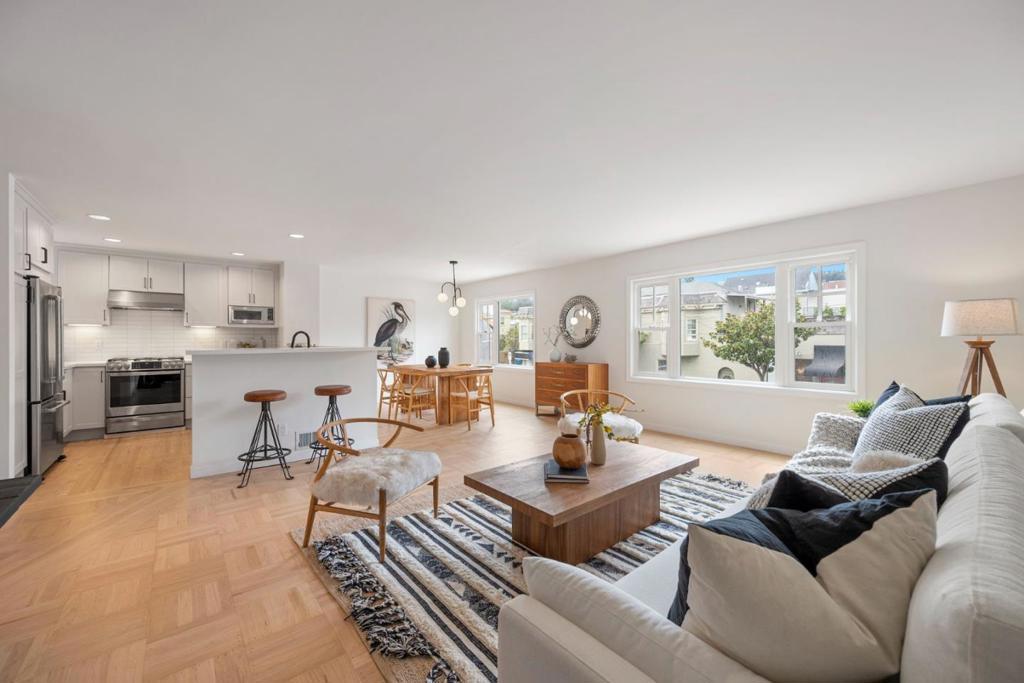 Nestled in the heart of vibrant Noe Valley one of San Francisco's most beloved neighborhood's this inviting home offers an ideal balance of lively city energy and everyday comfort. Enjoy the neighborhoods charm just beyond your door while residing in a stately, impeccably maintained 1950s building. Inside, the unit you'll find beautiful hardwood floors in excellent condition, complemented by large picture windows that fill the space with natural light. Recessed lighting adds a warm, modern touch, while the kitchen is equipped with stainless steel appliances and sleek quartz countertops for both style and functionality. The well-designed layout includes two spacious bedrooms, each with generously sized closets, creating a comfortable and practical living space. Additional conveniences include exclusive-use parking and laundry. Step outside to a shared backyard retreat, complete with a newly refreshed ipe wood deck and mature fruit trees perfect for relaxing or enjoying time outdoors. Ideally located just moments from the shops, cafes, and restaurants along 24th Street, with excellent public transportation right at your doorstep, this home offers easy access to the best of city living. Part of a small, well-managed TIC, this offering represents a 43% TIC interest.