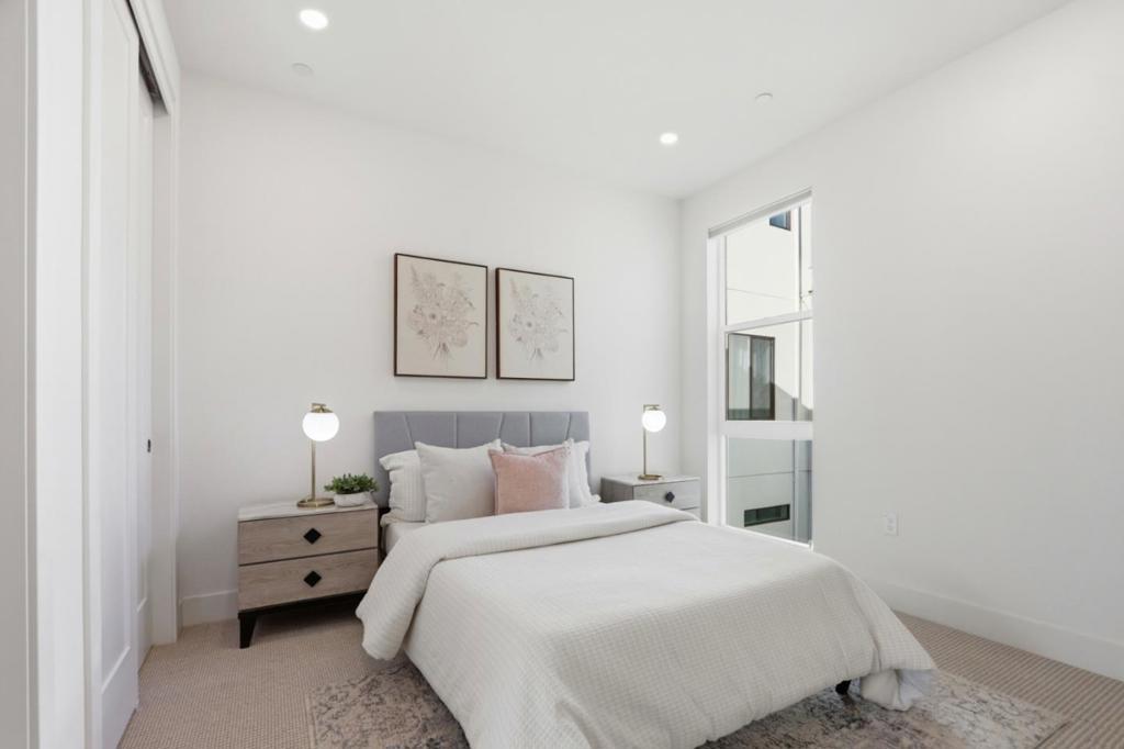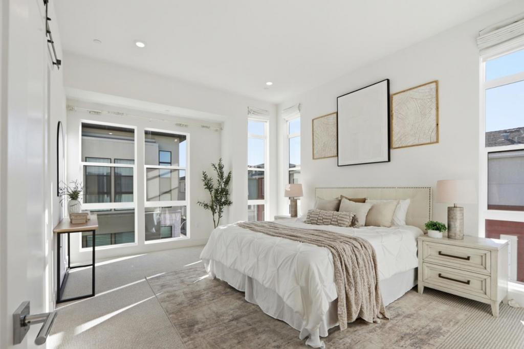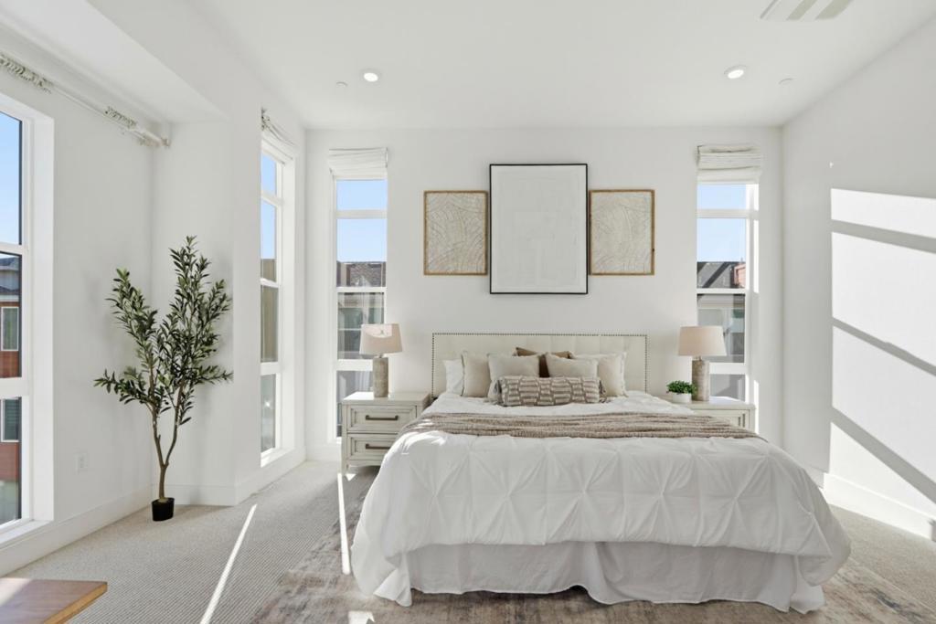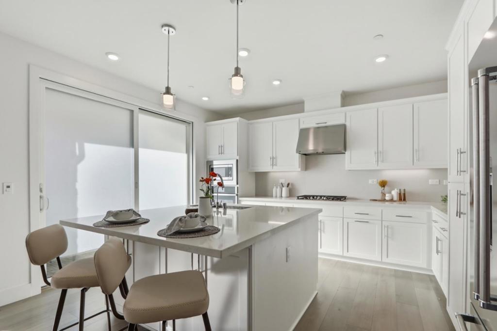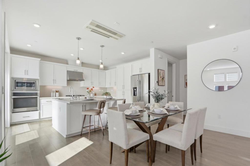Must-see! Rarely available 3-bedroom plus den end unit corner lot townhome in the Nuevo community, built in 2020 and offering 1,924 sq. ft. of modern living space. This stylish home features three bedrooms, a versatile den, and 2.5 baths, thoughtfully designed for both elegance and everyday functionality. The chefs kitchen shines with stainless steel appliances, quartz countertops, and shaker-style soft-close cabinetry. The spacious primary suite boasts an impressive 11-foot ceiling, a walk-in closet, and a luxurious en-suite bathroom with dual vanities and a walk-in shower. Wide-plank engineered wood flooring flows throughout, complemented by smart home features including recessed lighting. The flexible den is perfect for a home office or guest room. Residents enjoy resort-style amenities such as a playground, basketball court, dog park, and beautifully landscaped common areas. Ideally located within walking distance to Costco and Whole Foods, plus dining and entertainment at Santa Clara Square and downtown Sunnyvale. Just minutes from NVIDIA, Apple, Amazon, LinkedIn, and other major tech campuses, with easy access to major highways and the Lawrence Caltrain Station. Do not miss this rare opportunity to own a modern, low-maintenance home in the heart of Silicon​​‌​​​​‌​​‌‌​​‌​​​‌‌​​​​​​‌‌​‌‌​​‌​​​‌‌​ Valley!