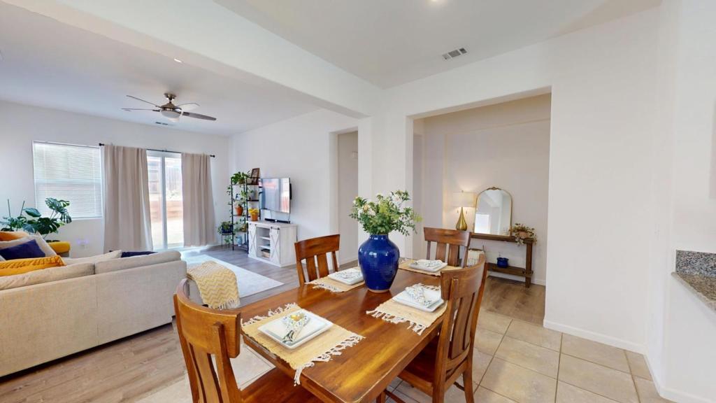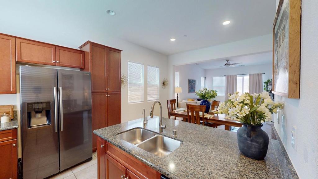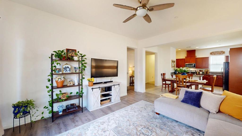 Welcome to this Modern Single-Story Gem in Soledad This Move-In Ready home offers 3 spacious bedrooms, 2 full bathrooms and 2-car garage. Step through the foyer & to the open-concept floor plan where the kitchen, dining, & family room flow seamlessly together with stunning wood and tile flooring. The kitchen shines with elegant granite countertops, rich wood cabinetry, matching appliances, and a layout designed for functionality and style. Natural light pours in throughout, creating a warm & welcoming atmosphere from morning coffee to evening relaxation. The primary bedroom features expansive walk-in closet, modern bathroom with walk-in shower, separate soaking tub and double vanities. The immaculate maintained front yard features automatic sprinklers and the ample backyard is perfect for growing families and pets. Additional features include indoor laundry room with matching front-loading Samsung washer and dryer, water softener, air conditioner, a fully finished/painted 2-car garage with plenty of overhead storage, new water heater and NO HOA's. This home is located within walking distance of local schools, parks, and just a short drive to the Pinnacles National Park and world-class destinations like Monterey Bay. See our stunning 3-D Video Tour for additional information!