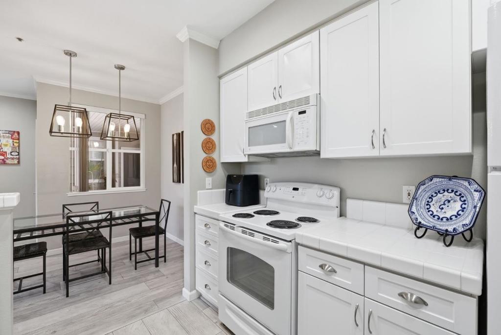 Luxury Living at Woodland Creek. This beautiful 1 bed 1 bath Condo offers a spacious open floor plan of 821 sqft of living space with great amenities. Conveniently located on the 1st floor of Building 3, this Condo features upgraded vinyl flooring throughout, upgraded LED recessed lighting, upgraded dining room light fixtures, tile countertops, dishwasher, built-in/oven range combo, microwave, in-unit stackable washer/dryer in pantry room, Nest Thermostat with A/C, a large walk-in closet, and a balcony. The condo also comes with 2 parking permits: 1 assigned space in the secure, underground parking garage with elevator access, and 1 unassigned parking space in the common parking area. Amenities include: Clubhouse, Fitness Center, Swimming Pool and Hot Tub. Within minutes: Embarcadero Shopping Plaza, 101 Freeway, Downtown Palo Alto, Stanford University, Stanford Shopping Center and major Tech companies. Pets are allowed.