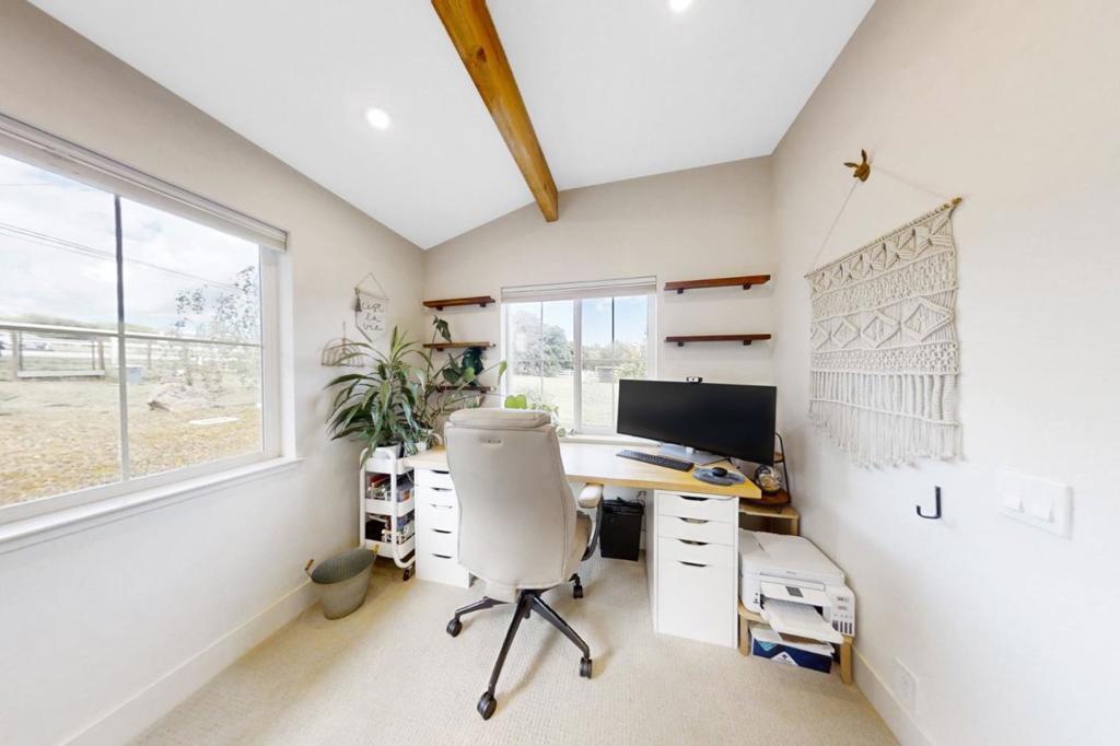Charming, fully updated residence set on nearly 4 usable acres in one of Corralitos most desirable locations, just moments from Corralitos Market and Monte Vista School. Thoughtfully designed for both comfort and style, the home features a beautifully remodeled kitchen and bathrooms, a welcoming living room, four spacious bedrooms, and dedicated office space, all complemented by a detached two-car garage. Step outside to a fantastic backyard patio, perfect for entertaining or enjoying quiet moments surrounded by peaceful natural beauty. The expansive grounds offer a rare blend of refined country living and exceptional versatility. The sun-drenched pastures, open space, and sweeping views create a picturesque setting, while the usable acreage invites endless possibilities for horses, orchards, or outdoor living. Surrounded by privacy and scenic beauty, this exceptional property captures the essence of a ranch retreat that is peaceful, elevated, and effortlessly connected to the charm and conveniences of Corralitos.